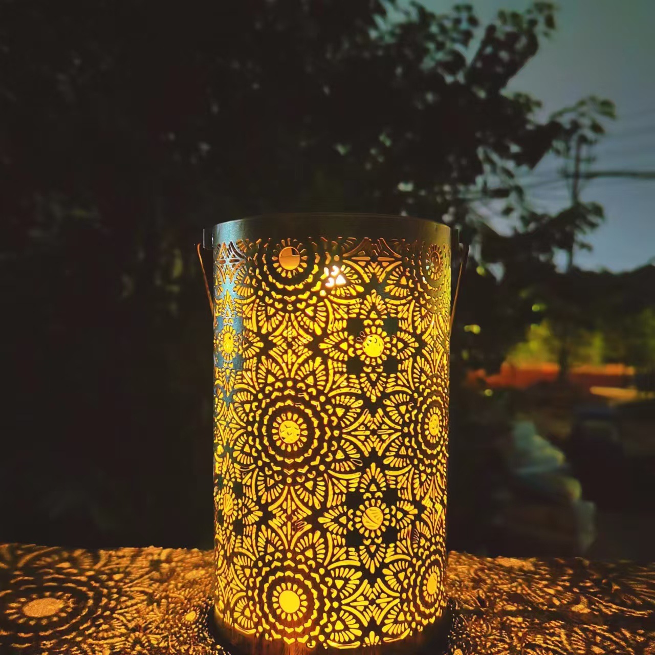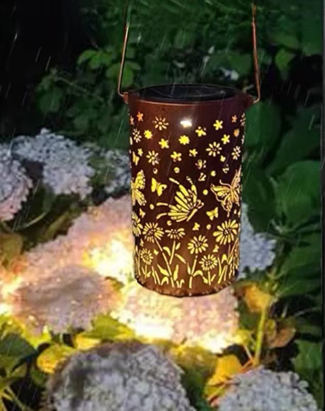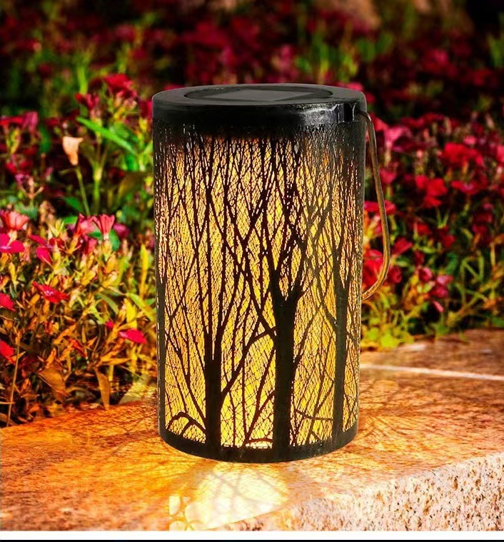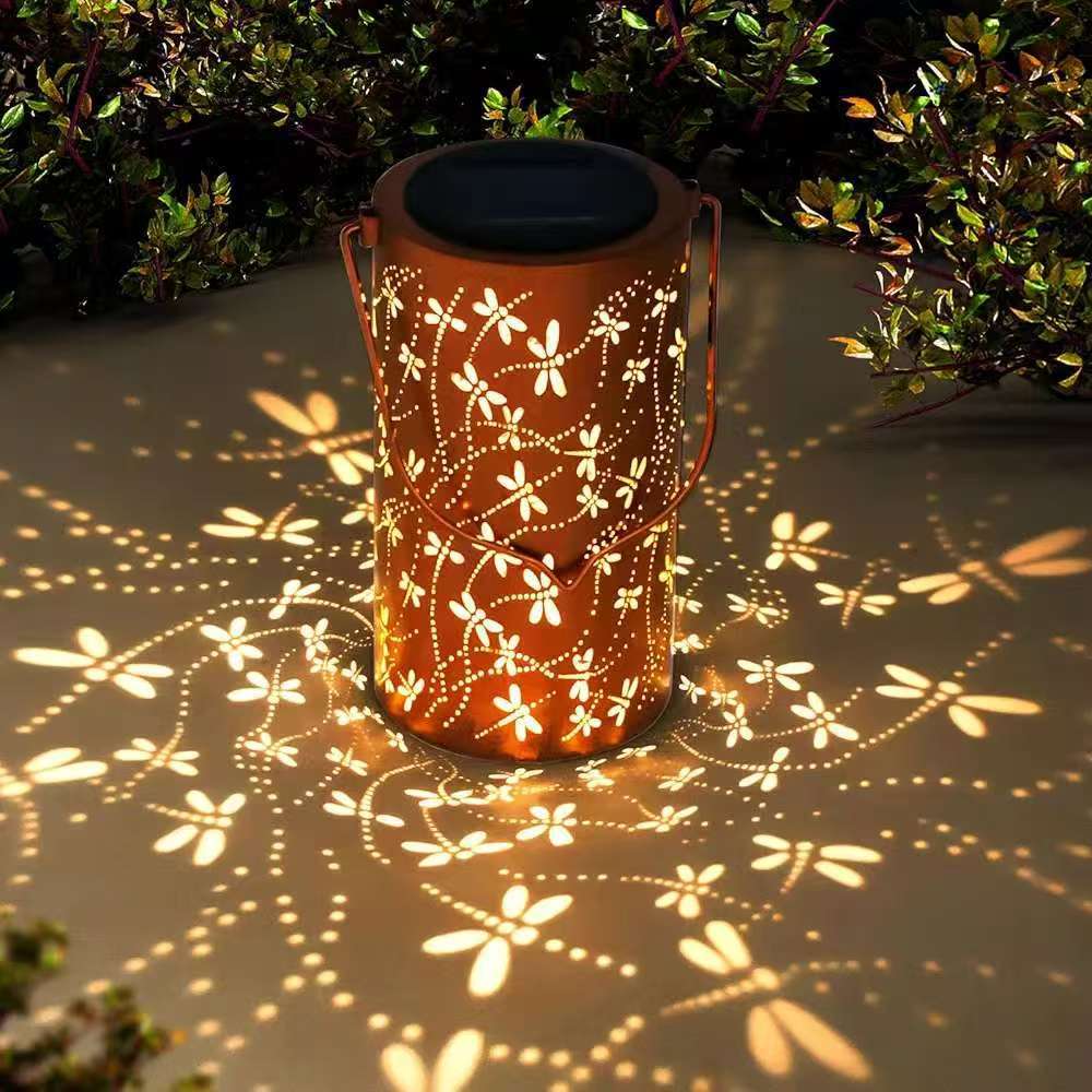 아마존의 인기 있는 태양열 랜턴 발코니 정원 철 중공 교수형 램프 야외 정원 램프 장식 캠핑 램프