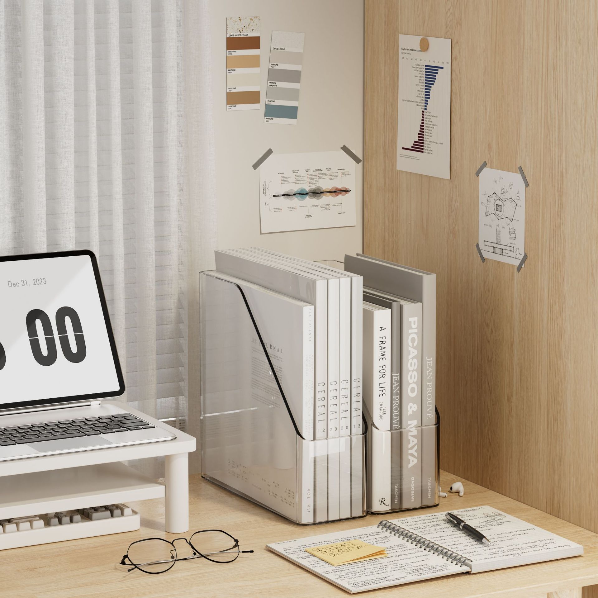 ✅ZT3266 파일 데스크톱 저장 상자 회색 투명 기숙사 책상 문구 책 보관 랙 대용량 사무실