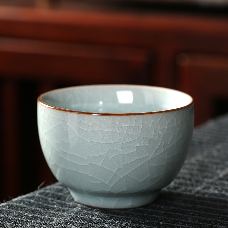 Ge Kiln 마스터 티 컵 싱글 세라믹 Ru Kiln 티 케이지 오픈 필름 아이스 크래킹 유약 티 컵 차 테이블 차 세트 액세서리