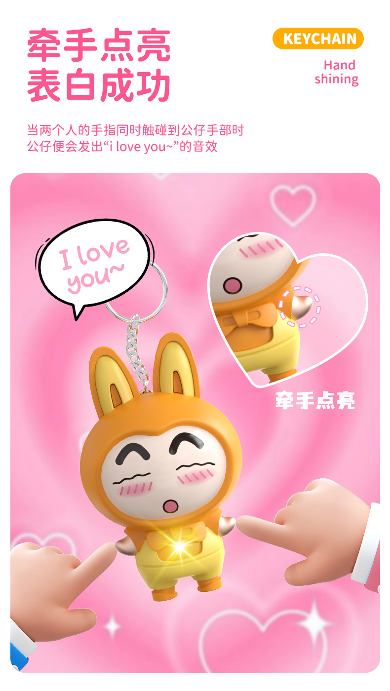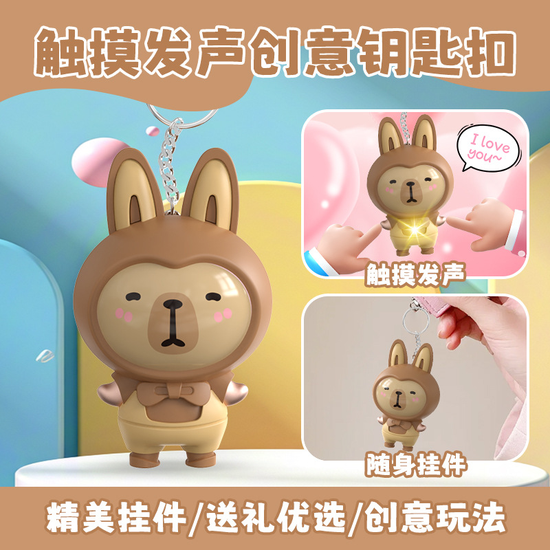 터치 유도 빛나는 사운드 녹음 가능한 만화 키 체인 유행 놀이 인형 펜던트 커플을위한 창조적 인 선물