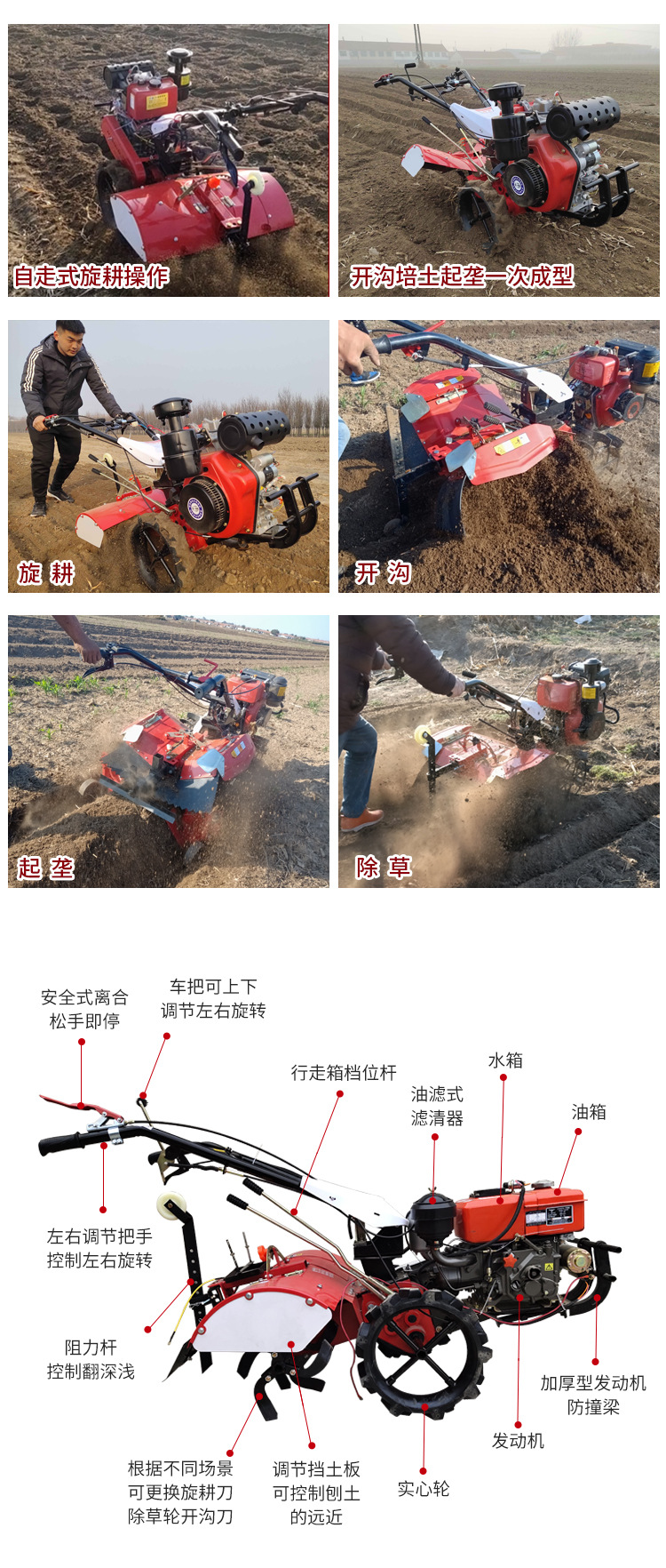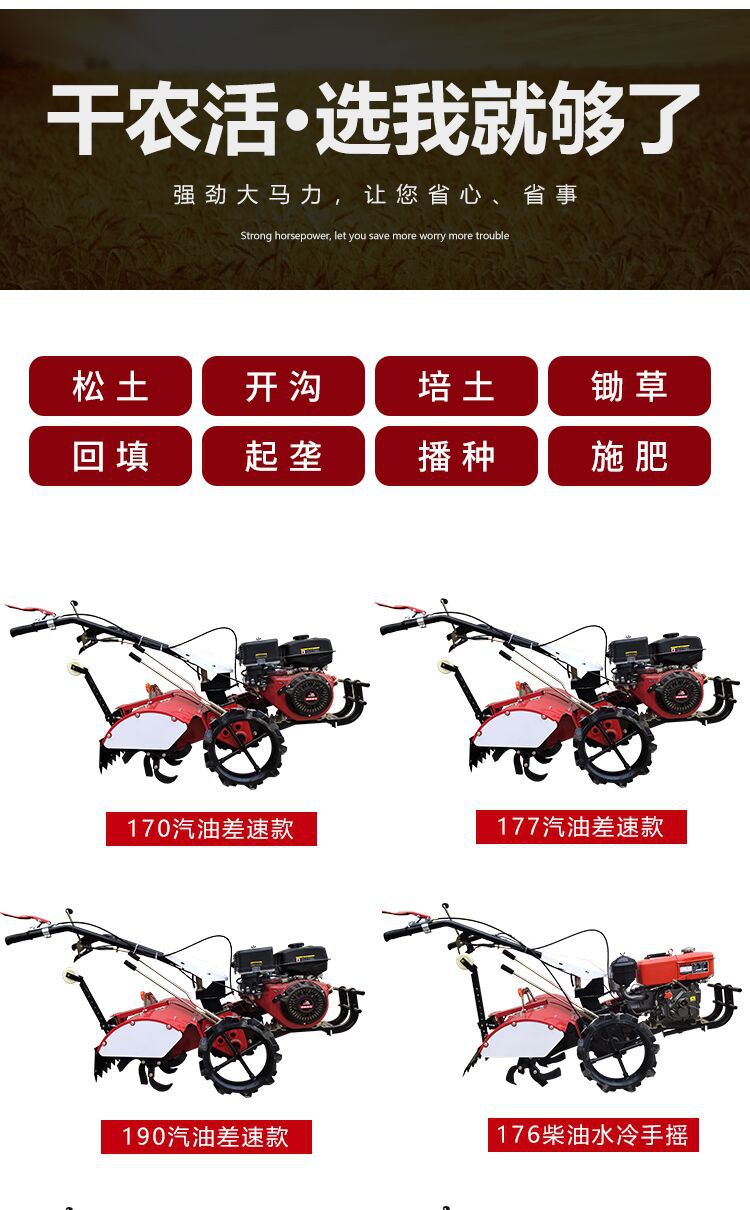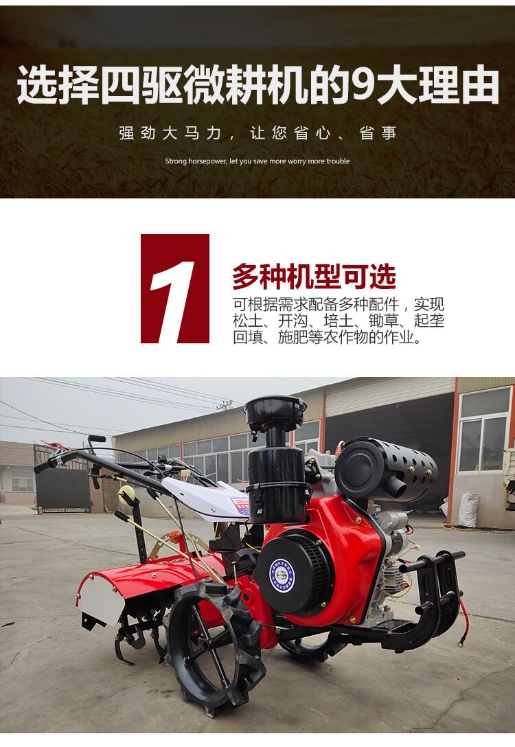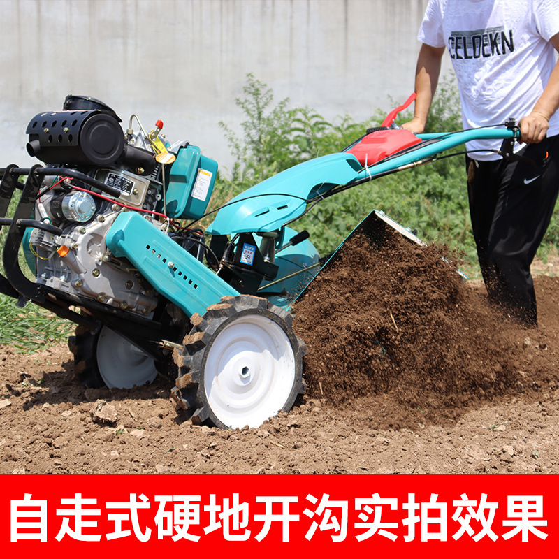 소형 마이크로 경운기 4 륜 구동 다기능 농업 가솔린 도랑 기계 과수원 디젤 새로운 산 가정용 로터리 경운기