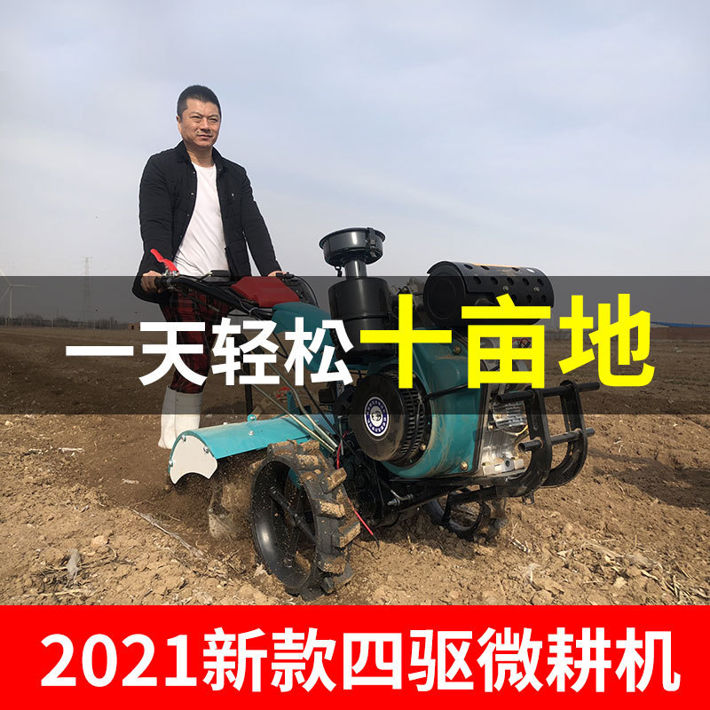 소형 마이크로 경운기 4 륜 구동 다기능 농업 가솔린 도랑 기계 과수원 디젤 새로운 산 가정용 로터리 경운기스토어 가기
