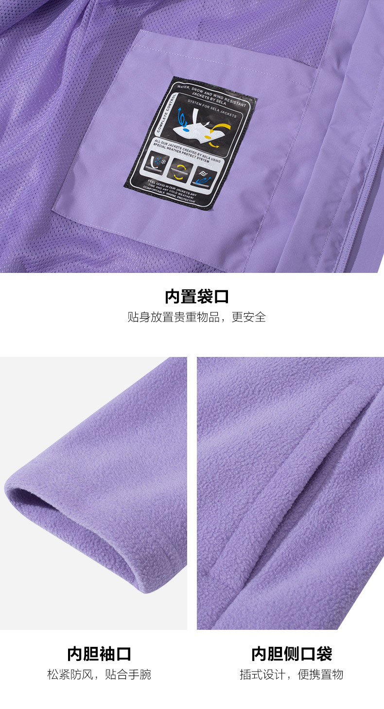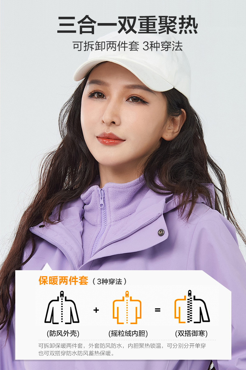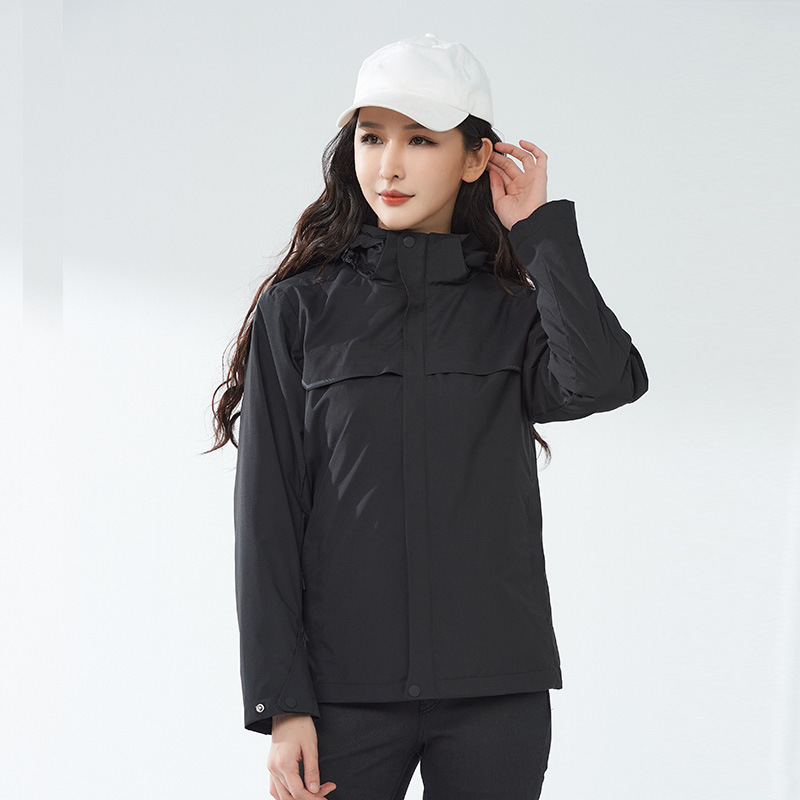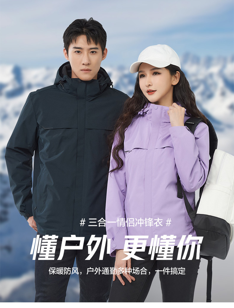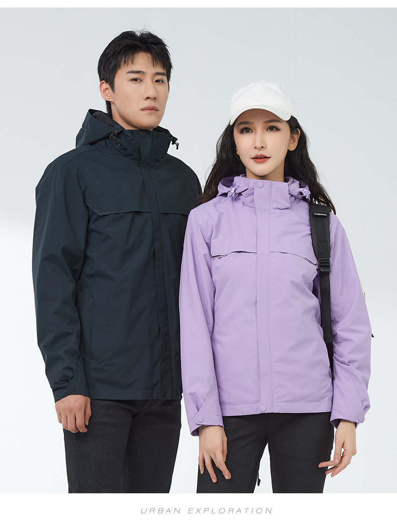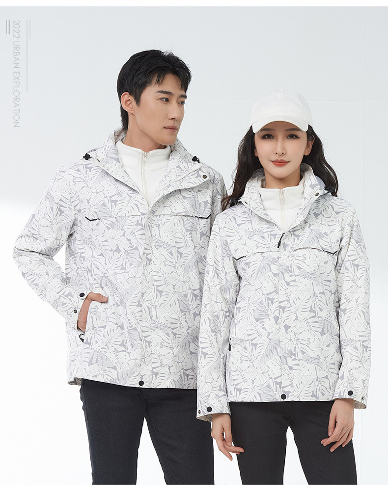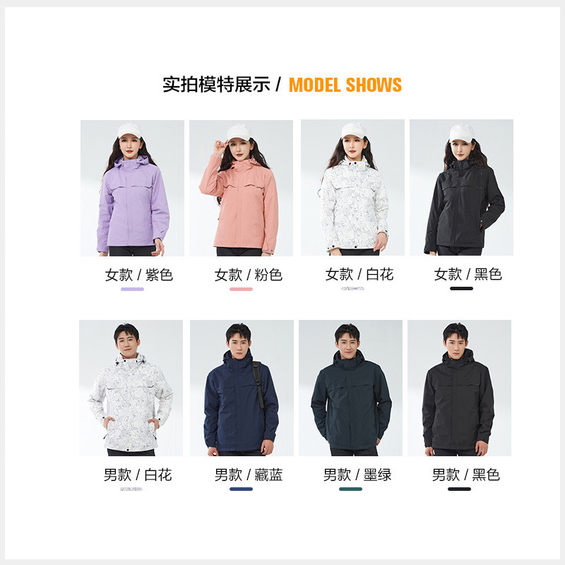 등산 세트 여성용 방풍 방수 기모 인쇄 3 대 1 충전 의류 겨울 툴링 재킷 세트 남성 야외 분리 가능스토어 가기