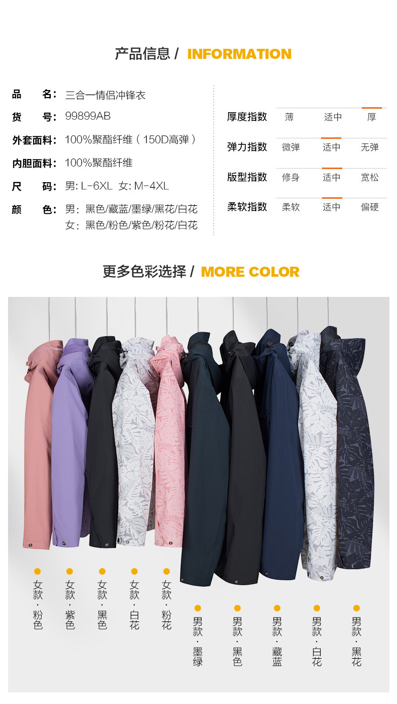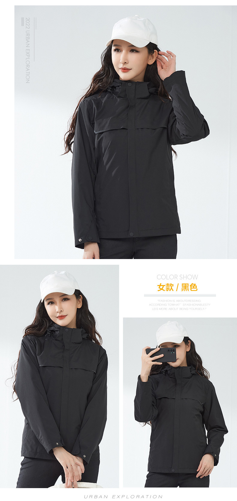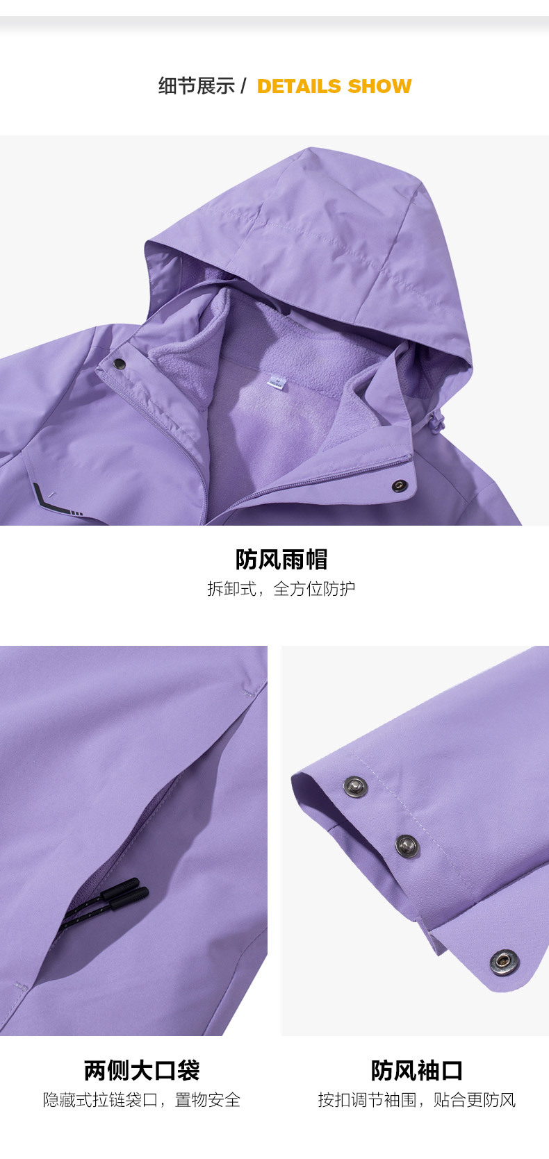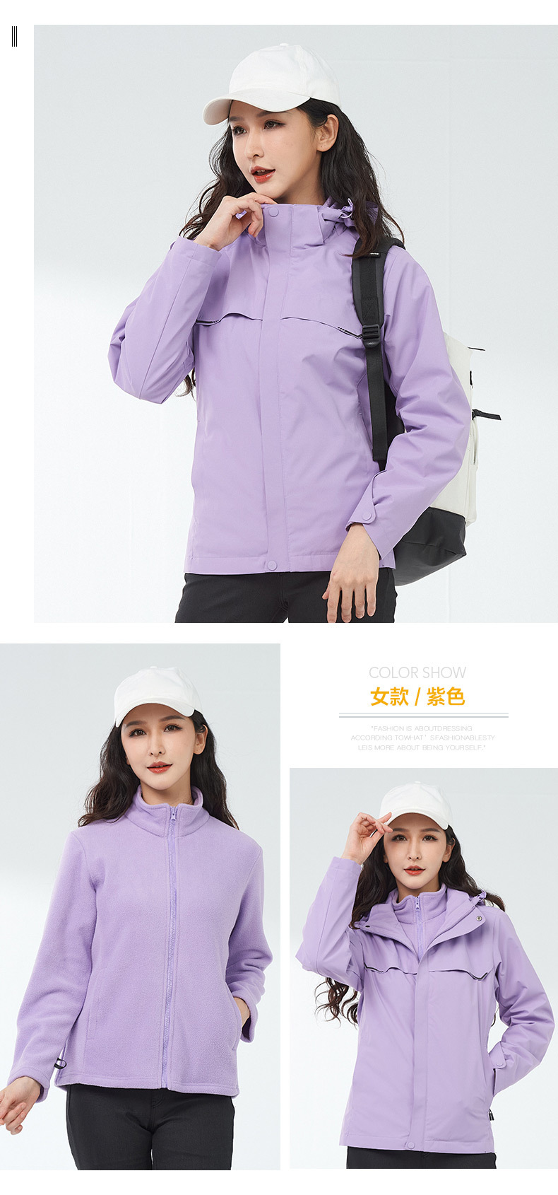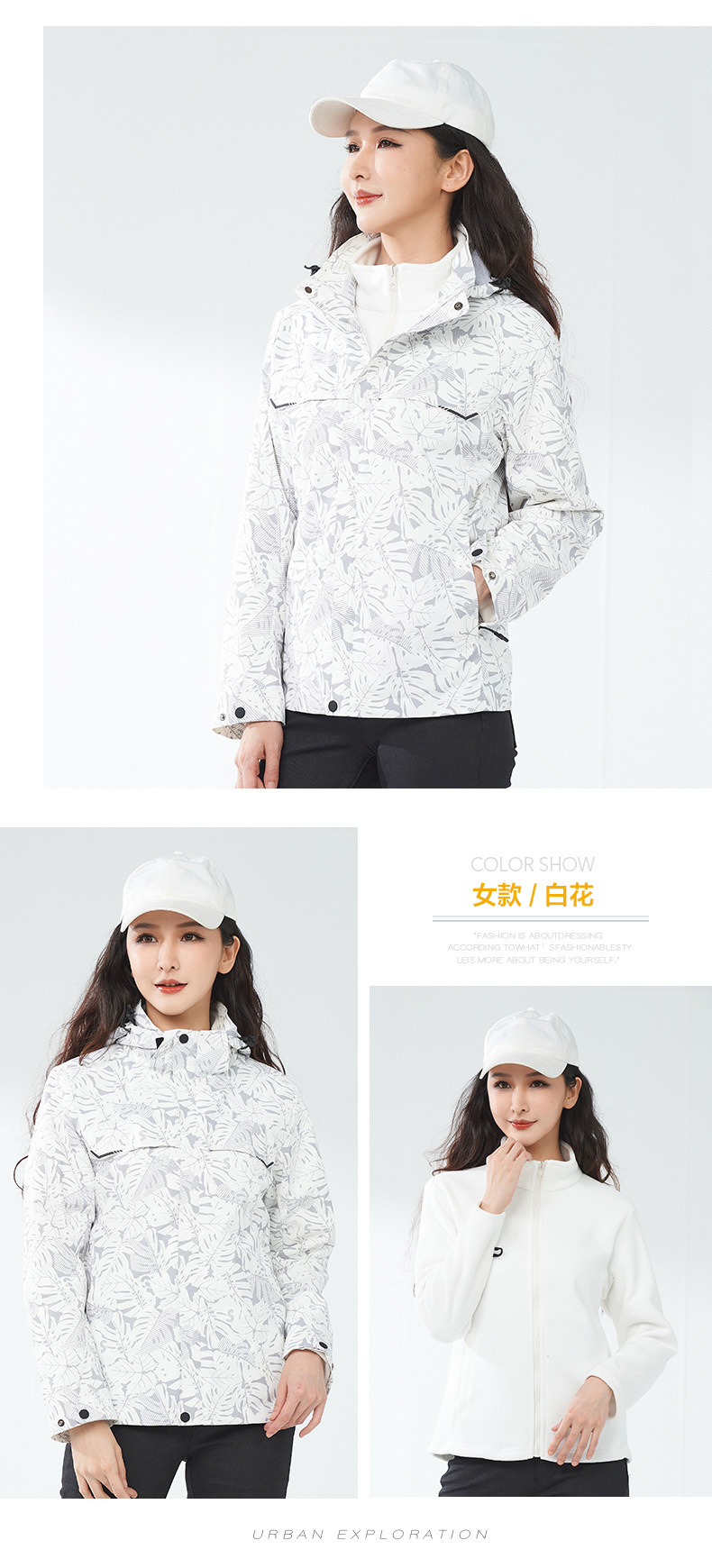 등산 세트 여성용 방풍 방수 기모 인쇄 3 대 1 충전 의류 겨울 툴링 재킷 세트 남성 야외 분리 가능스토어 가기