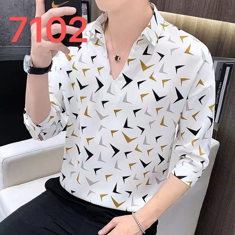 여름 세븐 포인트 슬리브 셔츠 남성용 트렌디 한 캐주얼 슬림 핏 체크 무늬 컬러 수직 스트라이프 여름 아이스 실크 셔츠스토어 가기