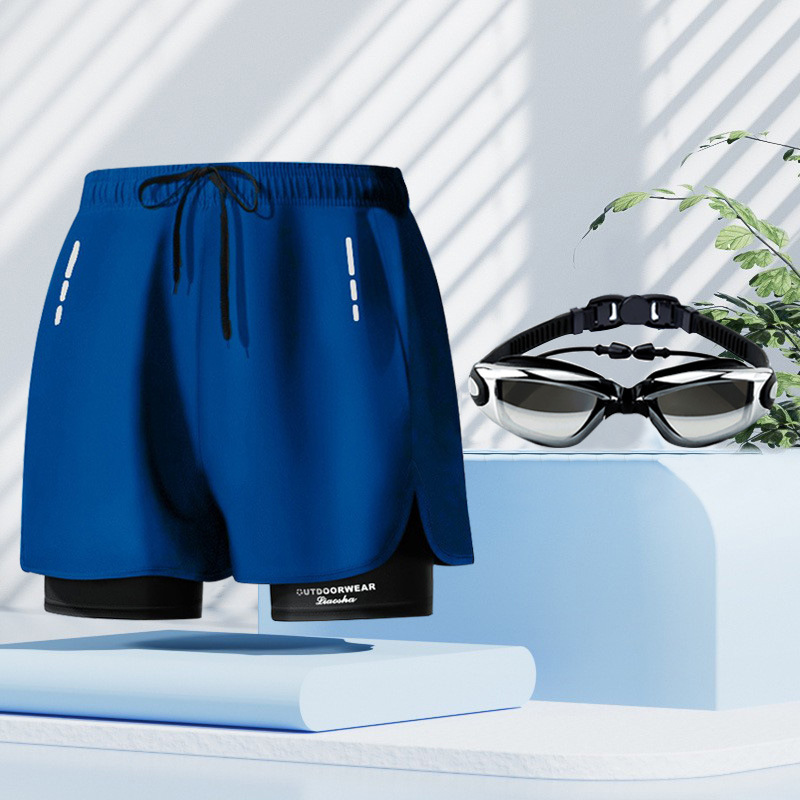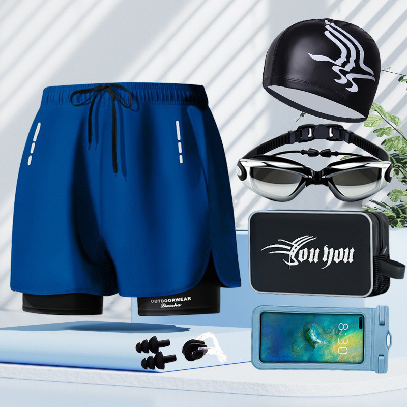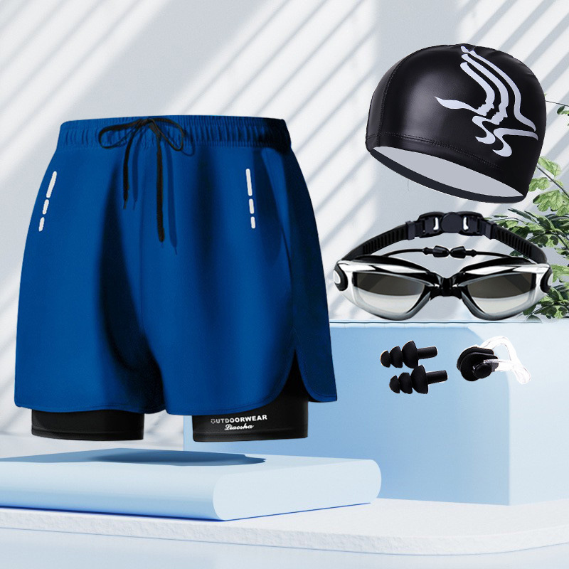 • [블루] 수영 트렁크 + 수영 고글 + 수영 모자