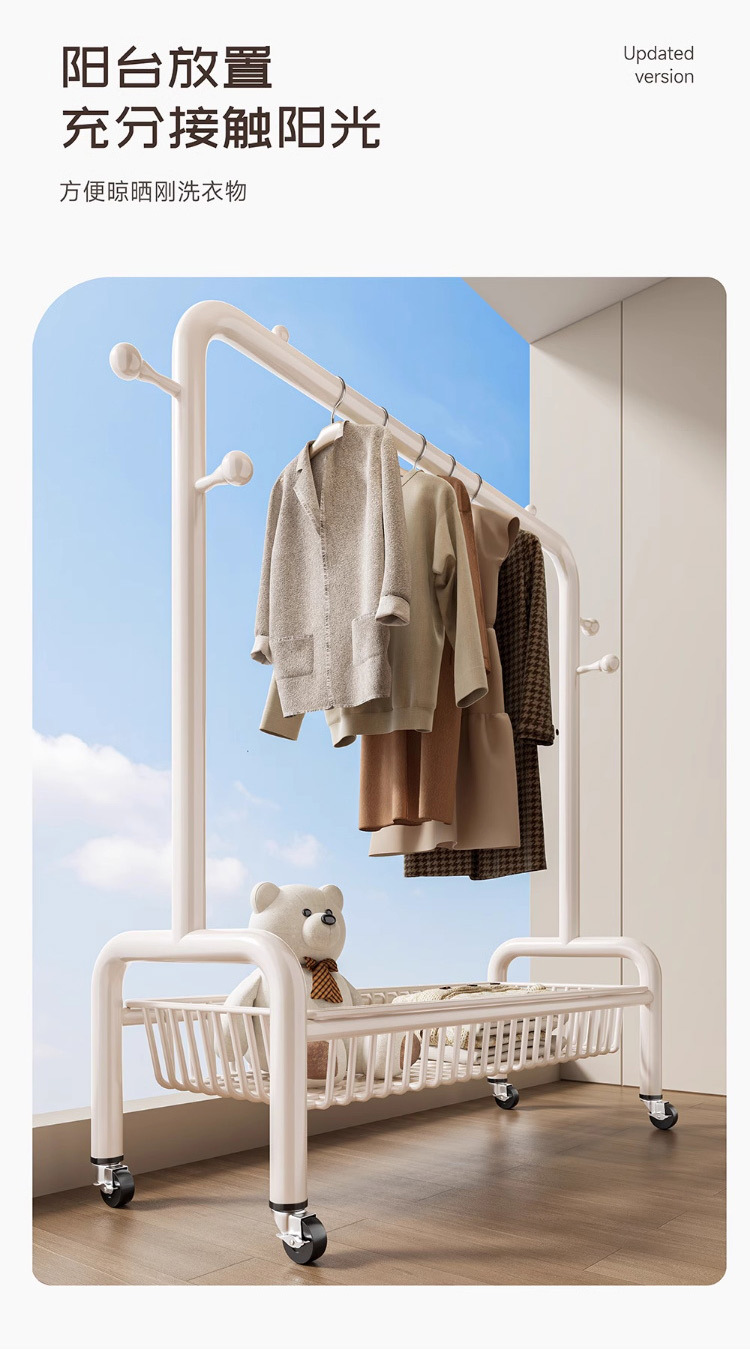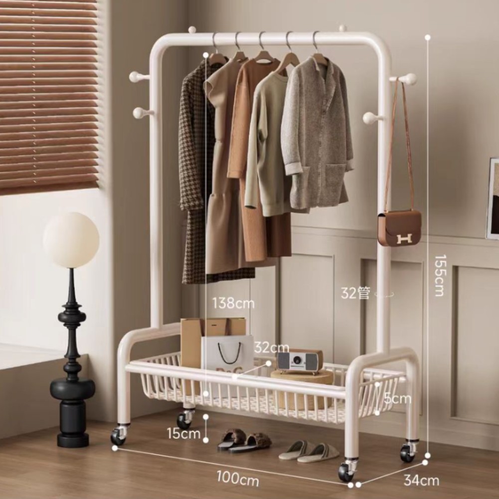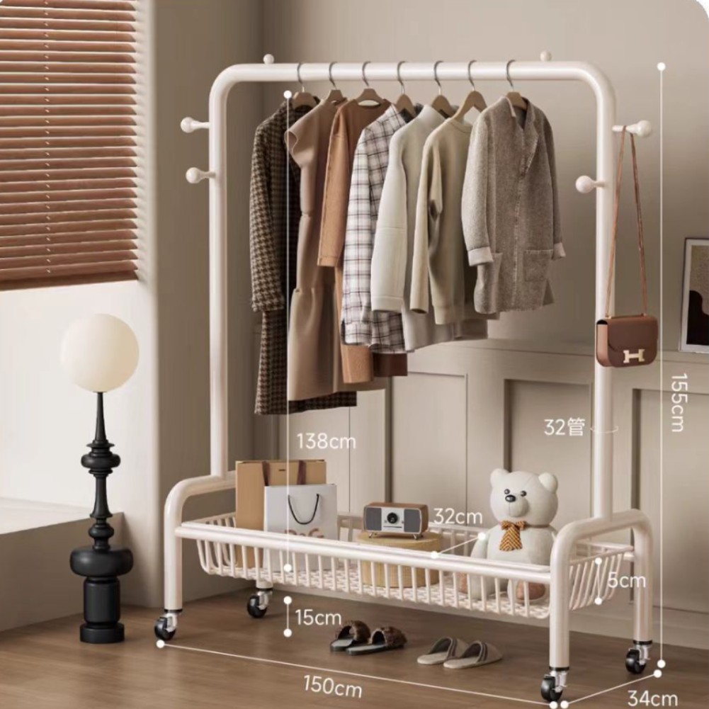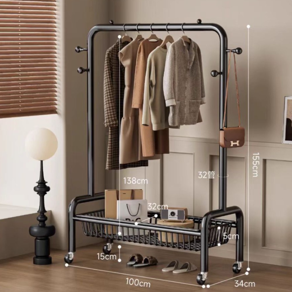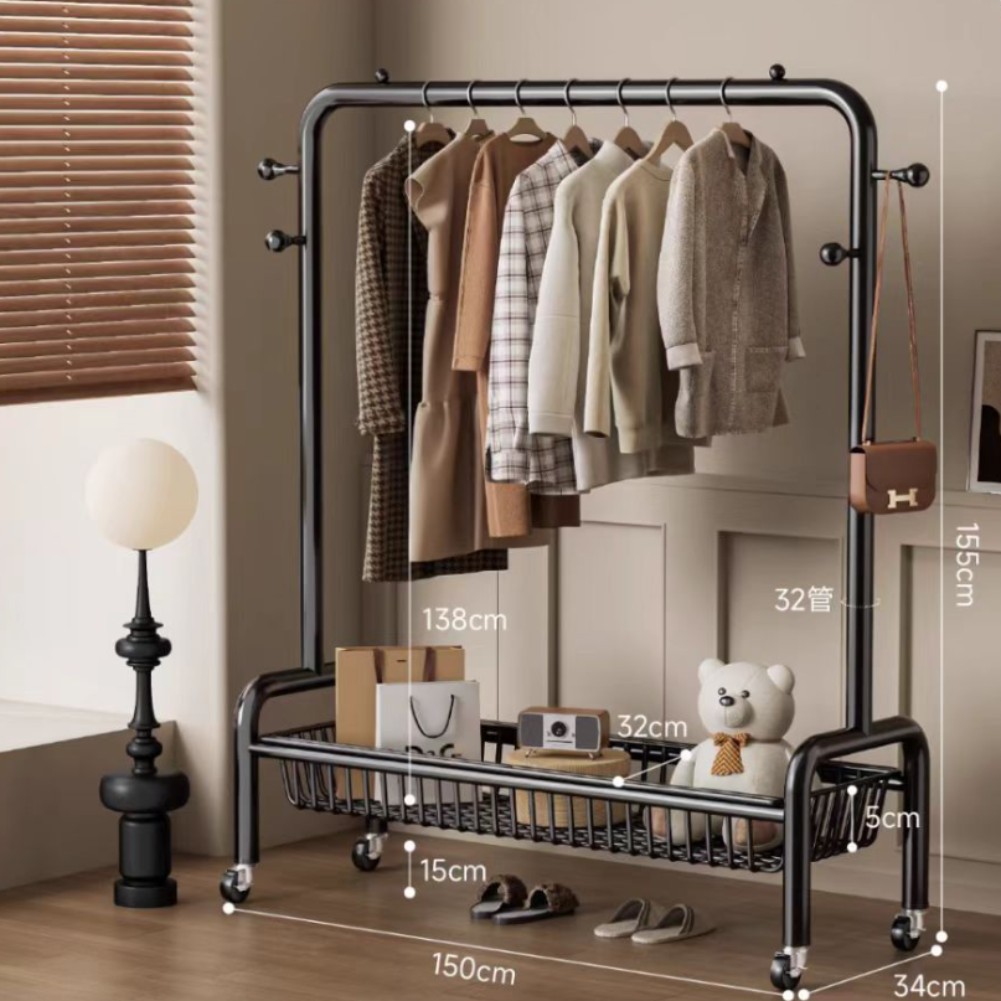 굵은 바닥 걸이 침실 가구 발코니 건조 랙 간단한 바람 바퀴 달린 모바일 의류 교수형 옷 코트 랙