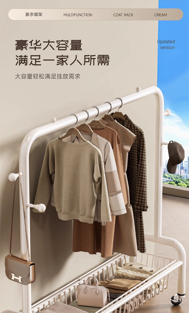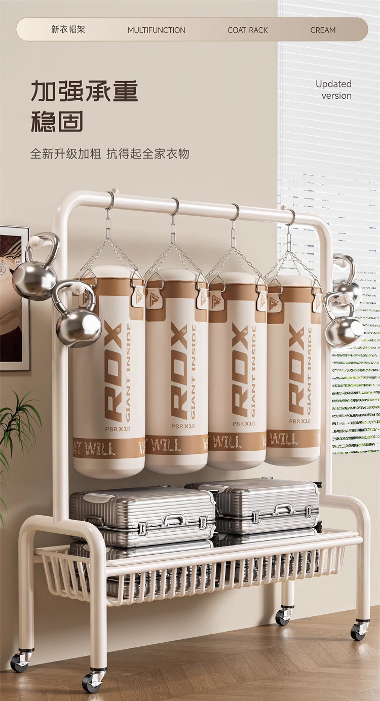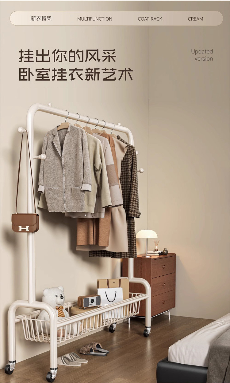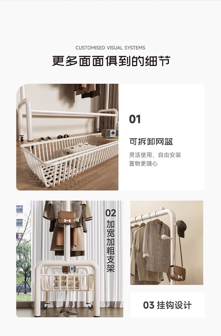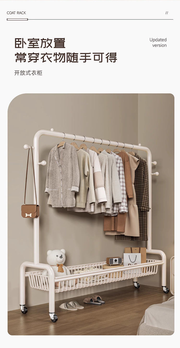 굵은 바닥 걸이 침실 가구 발코니 건조 랙 간단한 바람 바퀴 달린 모바일 의류 교수형 옷 코트 랙