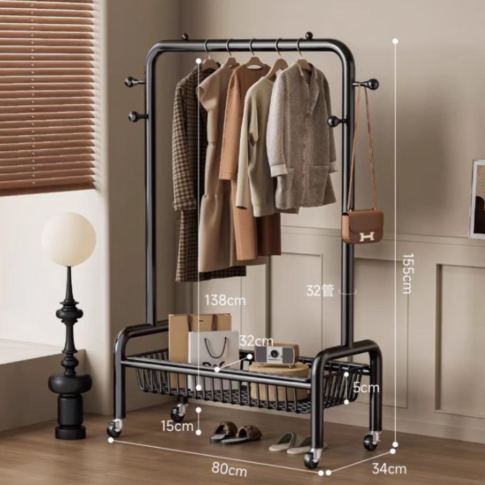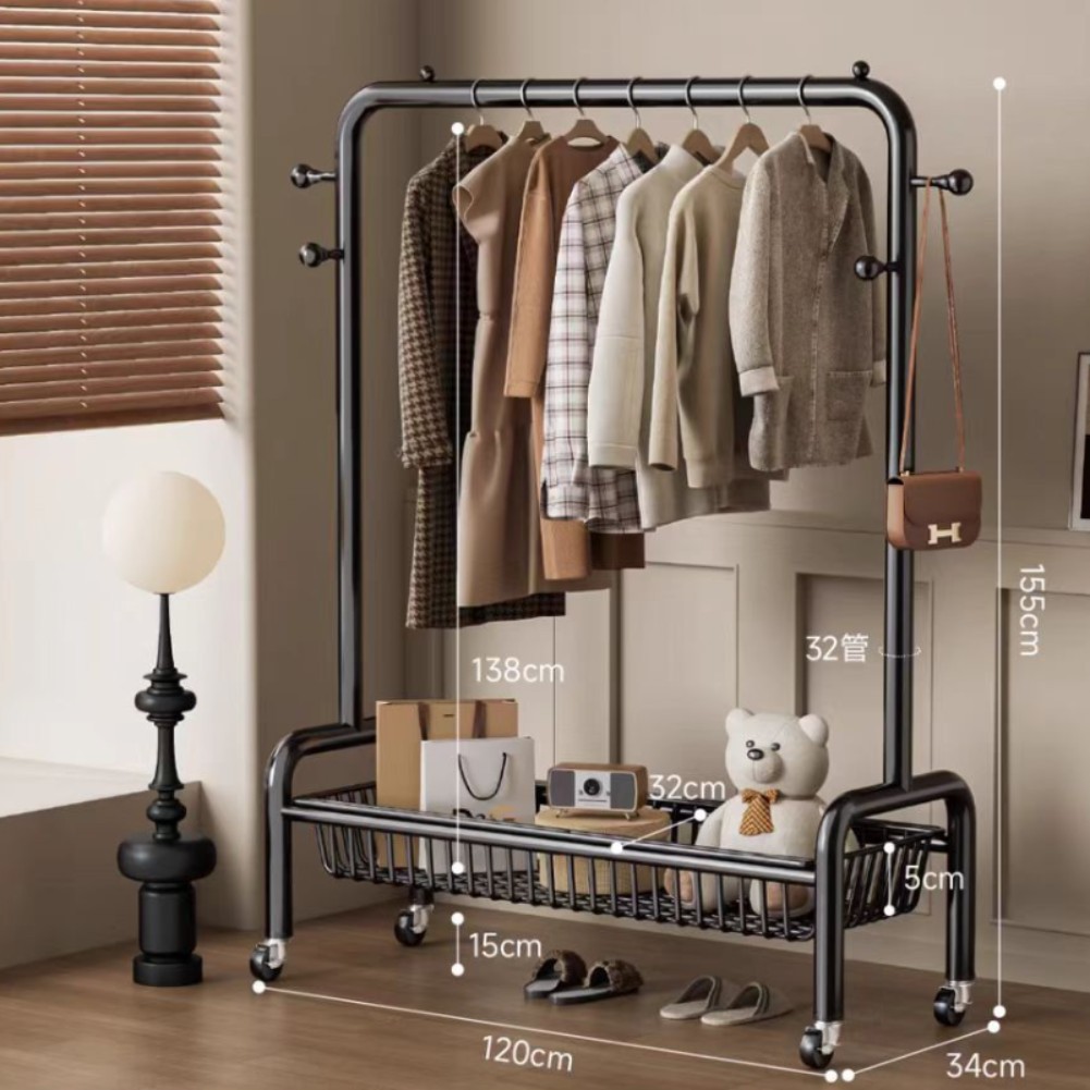 굵은 바닥 걸이 침실 가구 발코니 건조 랙 간단한 바람 바퀴 달린 모바일 의류 교수형 옷 코트 랙스토어 가기