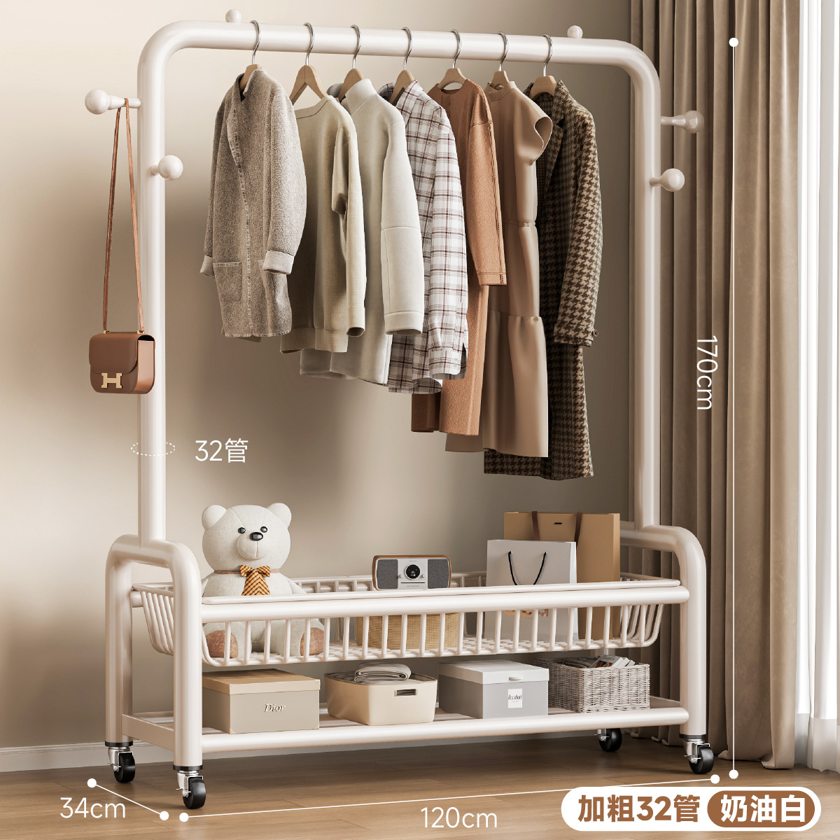 • 32 원형도어형/이중메쉬바구니/후크4개+바퀴-120㎝-크림 화이트