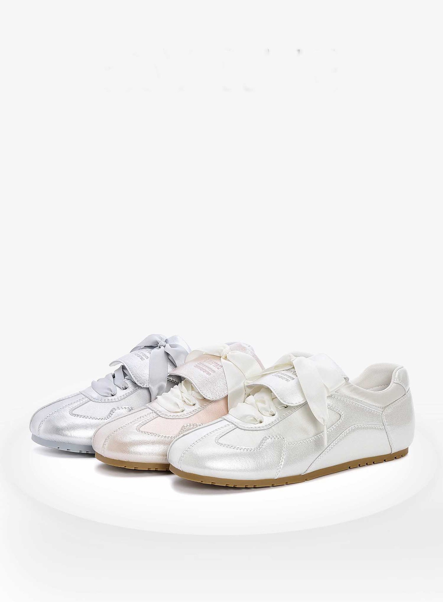 핑크 라운드 토 레이스 업 슈즈 여성 2025 뉴 스프링 소프트 솔 올 매치 플립 온 슈즈 발레 스타일 포레스트 검프 슈즈