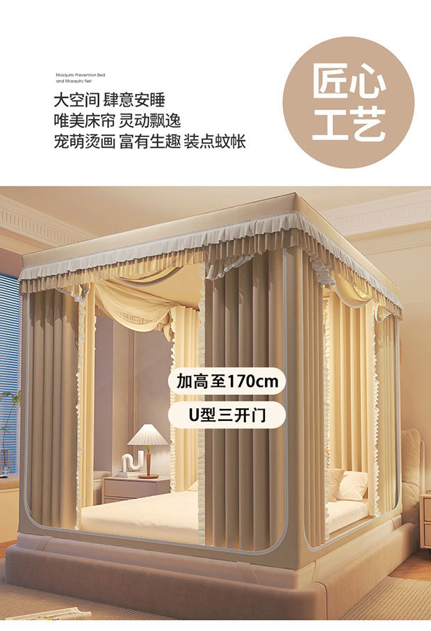 모기 음영 방지 침대 커튼 통합 낙하 모기장 가정용 침실 1.8 어린이 새 1.5 침대 커튼 브래킷스토어 가기