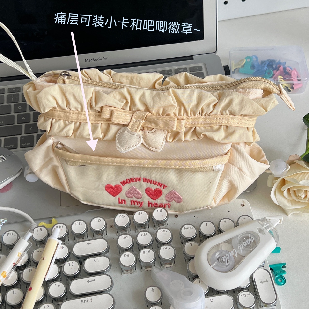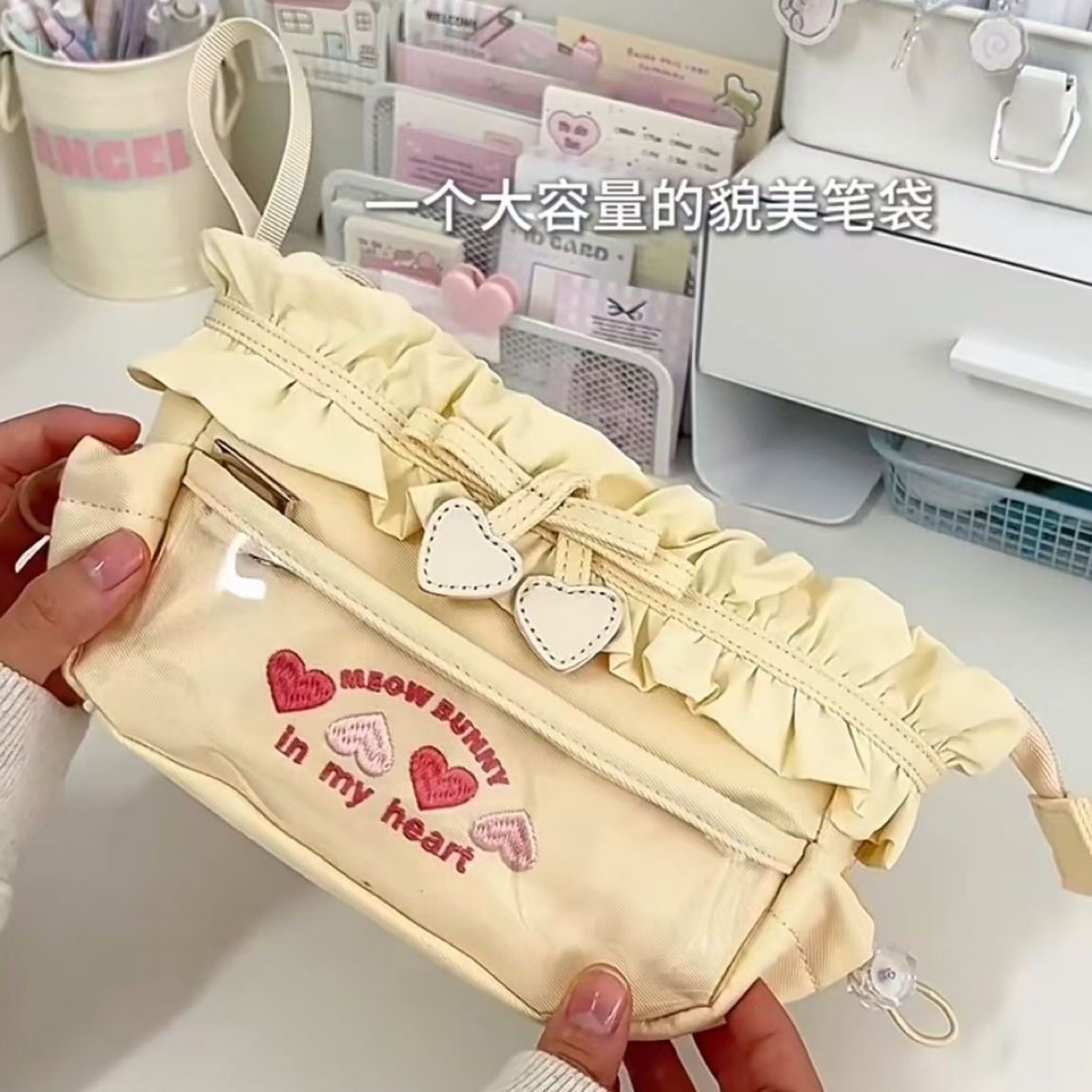 2025 봄 대용량 사랑 자수 통증 가방 연필 가방 DIY 학생 학교 새로운 문구 소녀 저장 가방