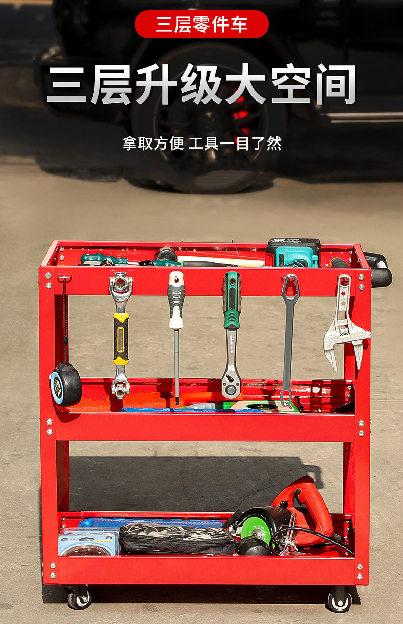 ✅두꺼운 산업 3 층 부품 자동차 도구 자동차 수리 및 유지 보수 다기능 모바일 바퀴 트롤리 도구스토어 가기