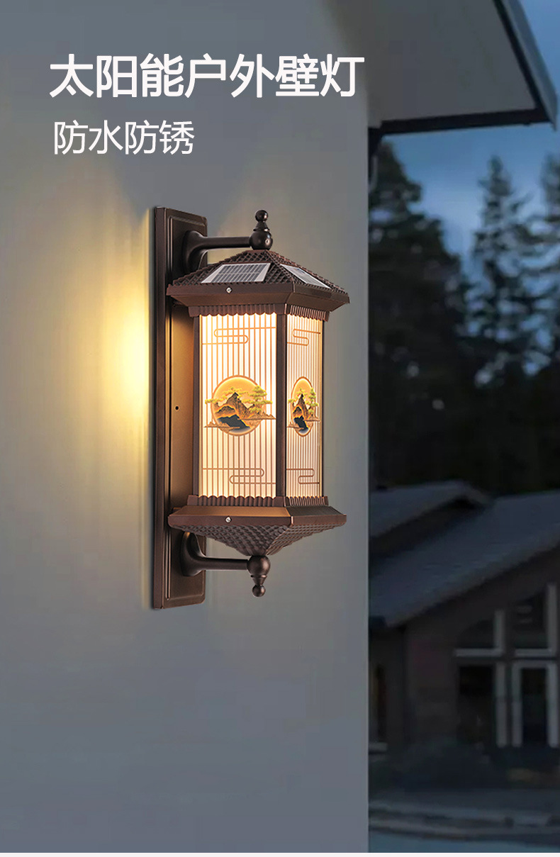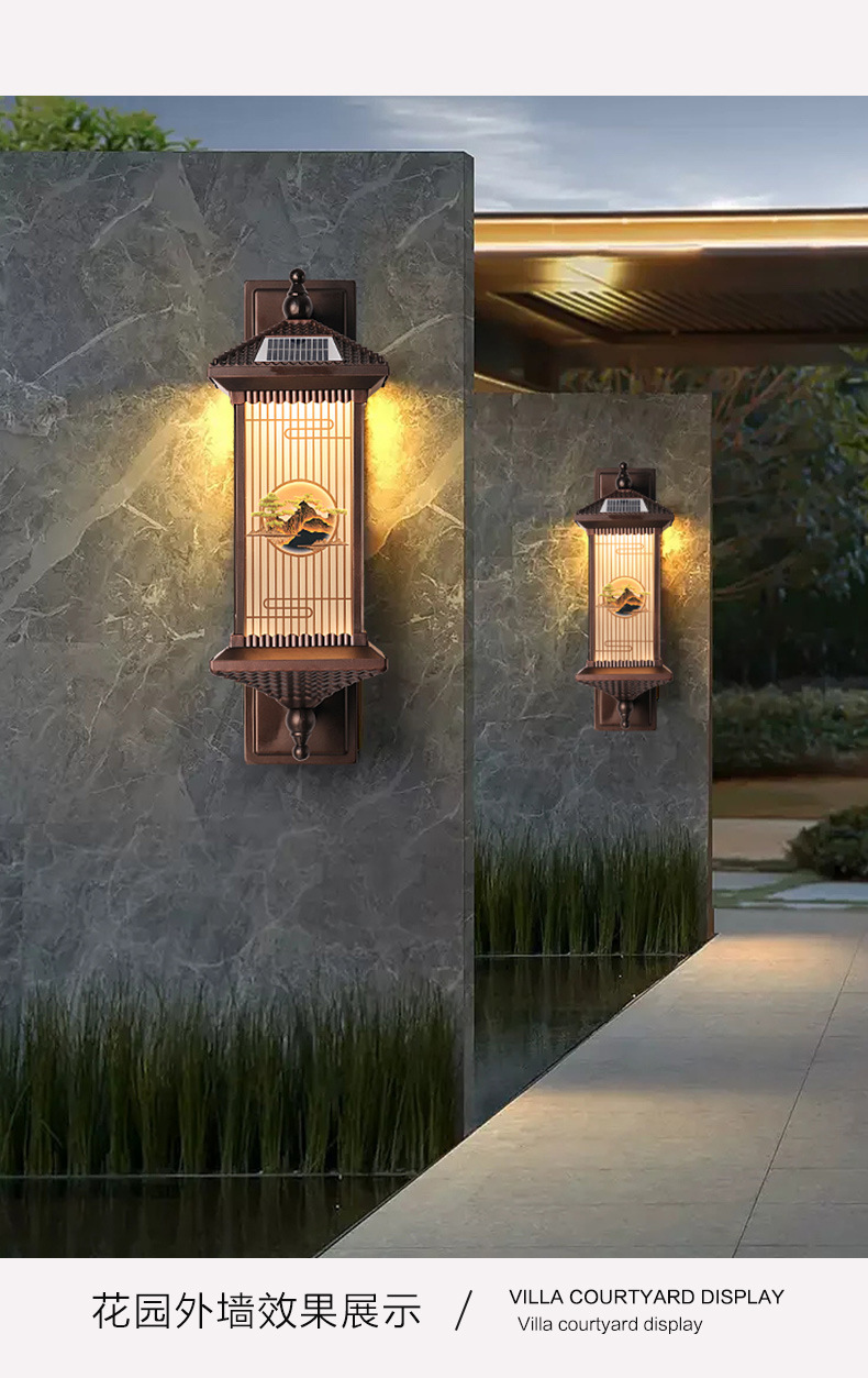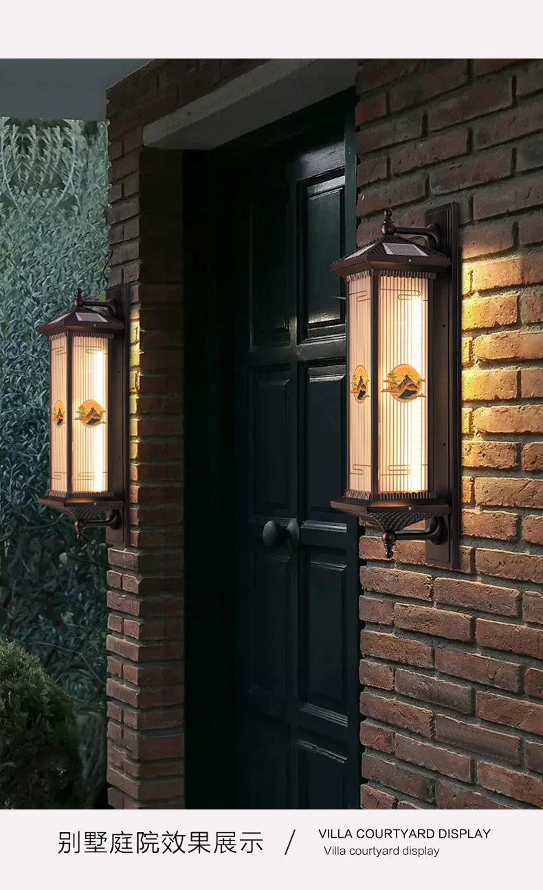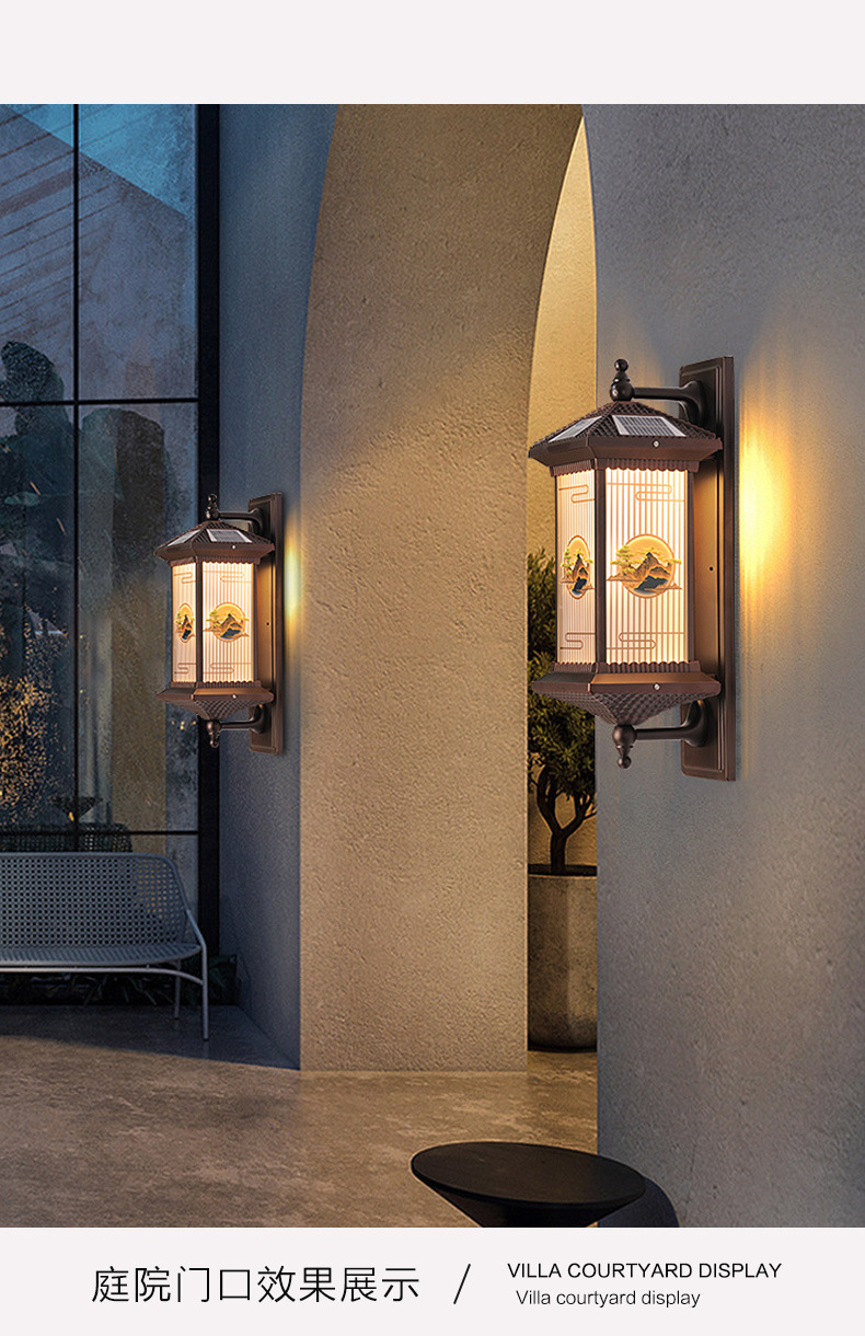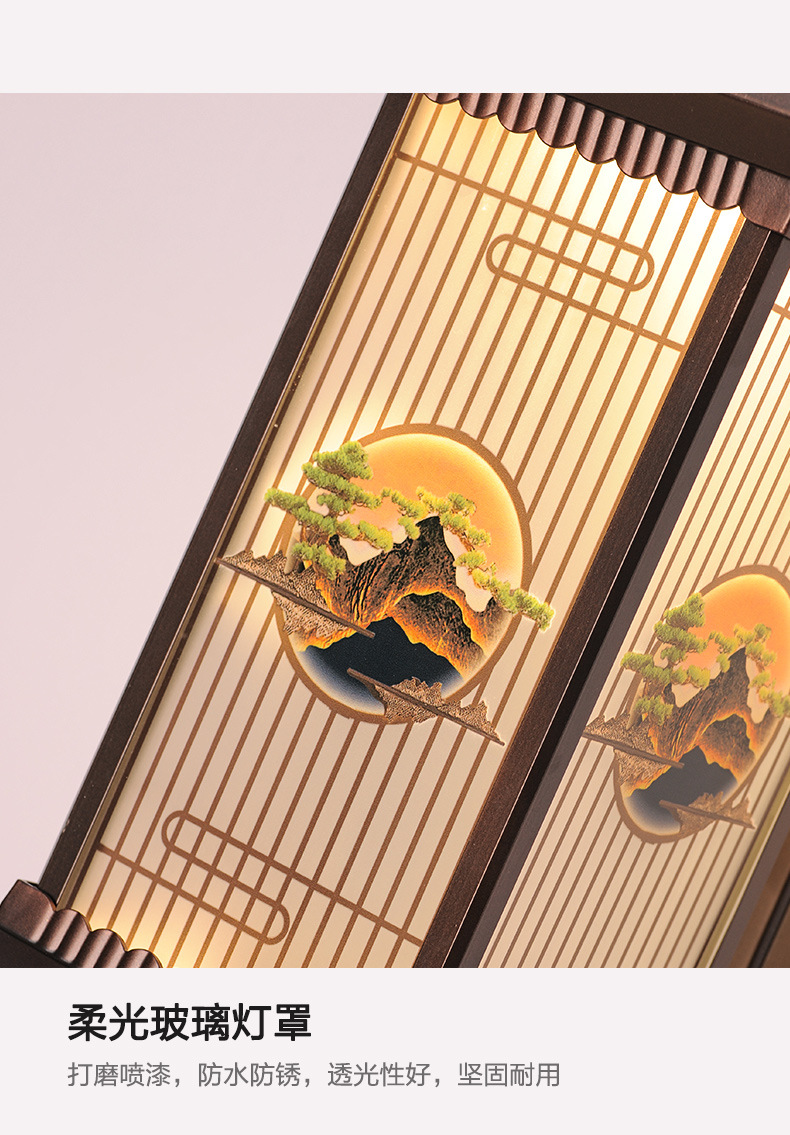 환영 소나무 태양 벽 램프 야외 새로운 중국 안뜰 빌라 벽 램프 방수 테라스 발코니 풍경 벽 램프