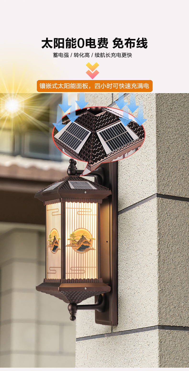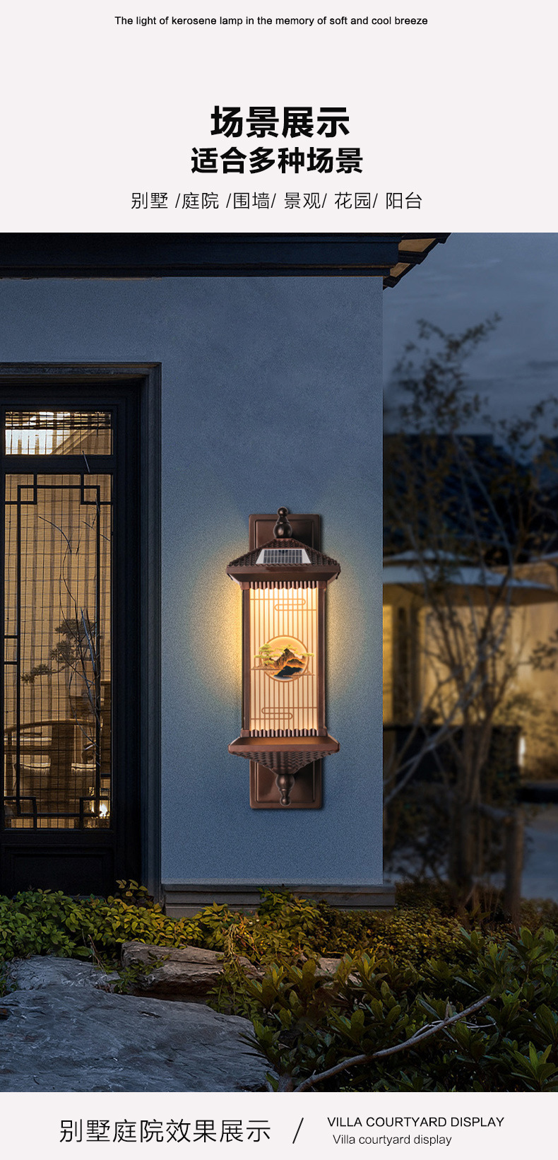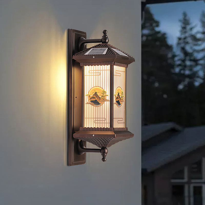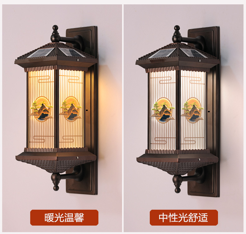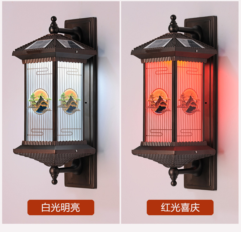 환영 소나무 태양 벽 램프 야외 새로운 중국 안뜰 빌라 벽 램프 방수 테라스 발코니 풍경 벽 램프