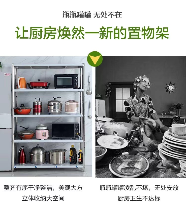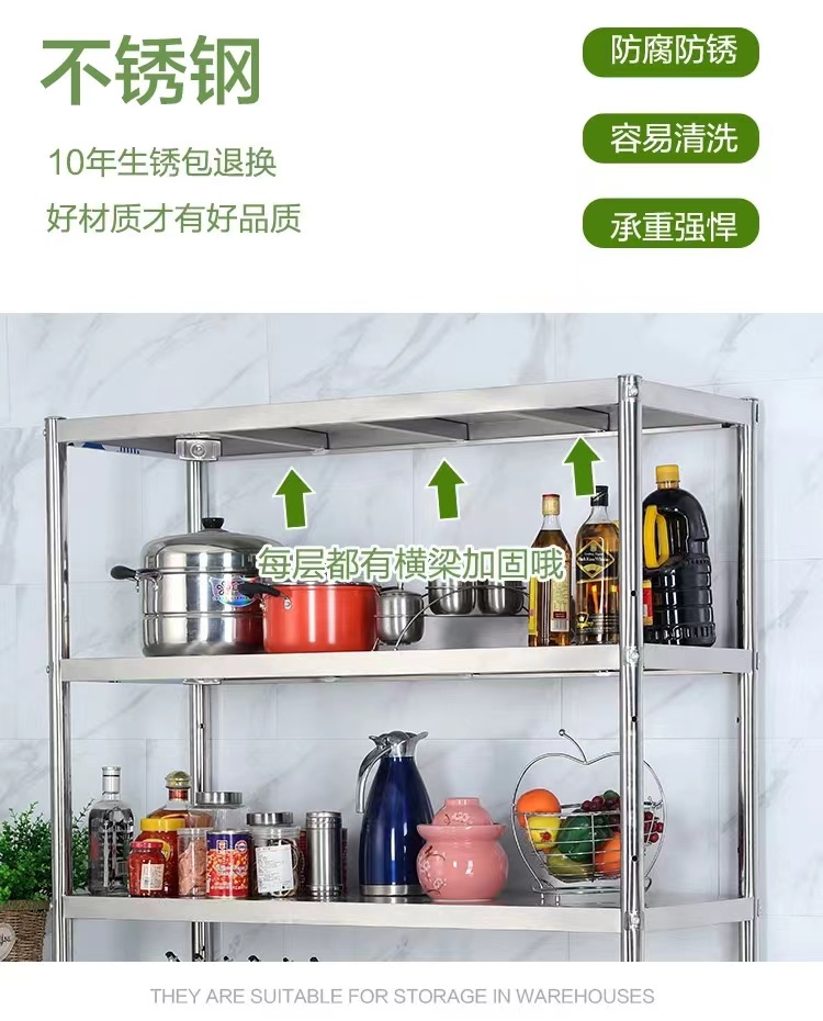 스테인레스 스틸 스토리지 랙 바닥 다층 주방 스토리지 발코니 스토리지 구성 전자 레인지 선반스토어 가기