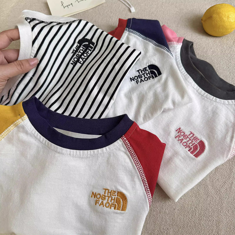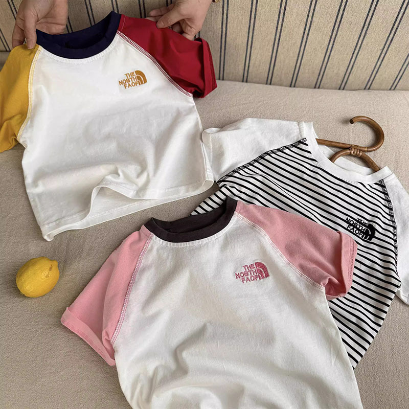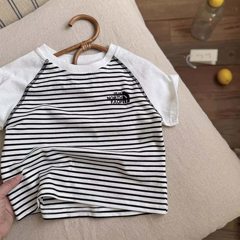순면 아동용 반팔 티셔츠 여름 2026 신상품 다용도 캐주얼 스트라이프 자수 트렌디 브랜드 남아 여아 상의스토어 가기