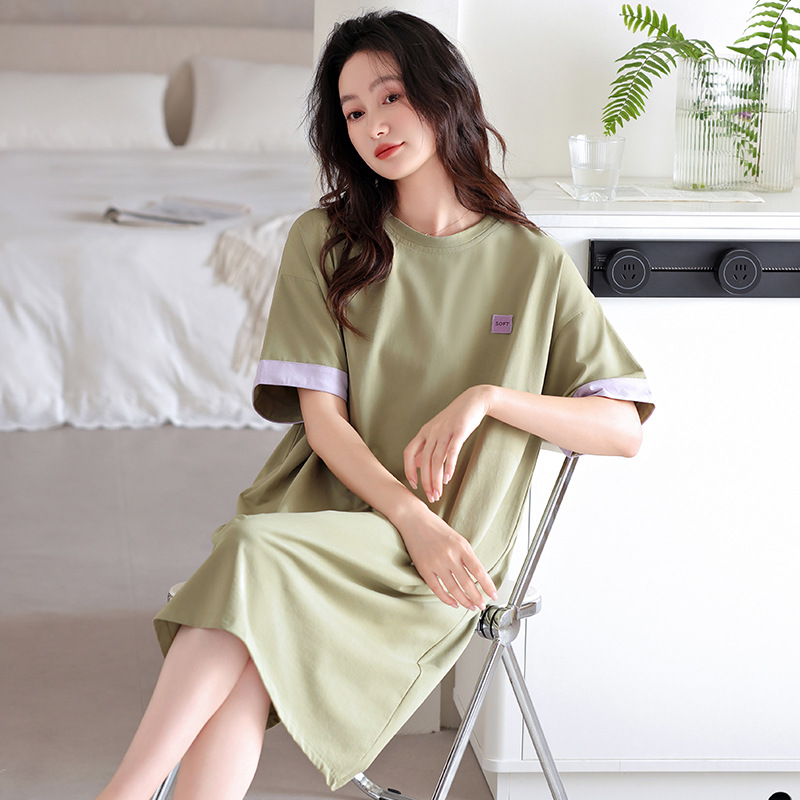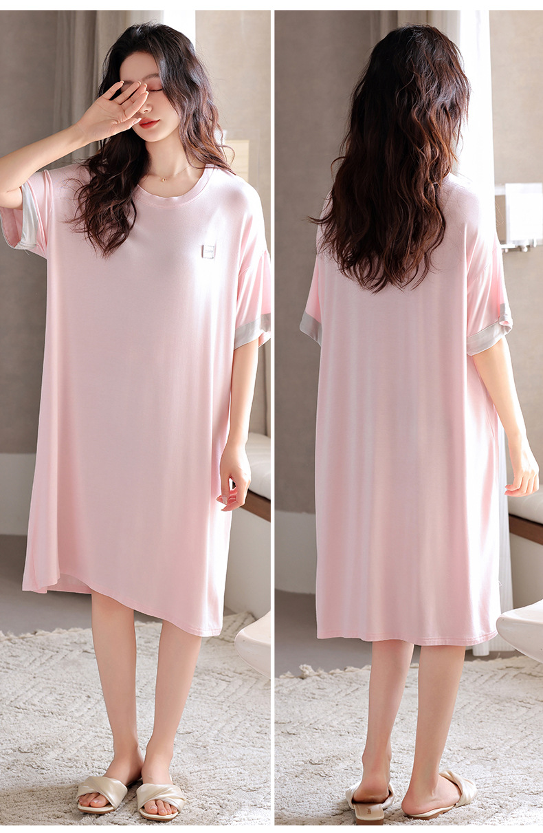 여자 여름 모달 가슴 패드 스커트 얇은 여름 여자 아이스 실크 여름 원피스 반팔 잠옷스토어 가기