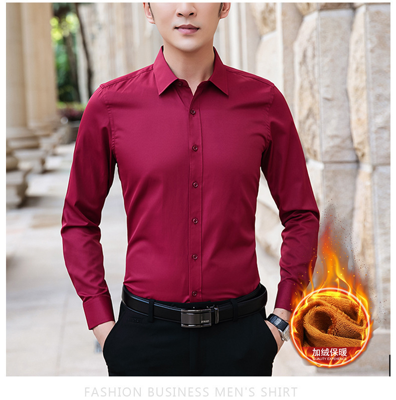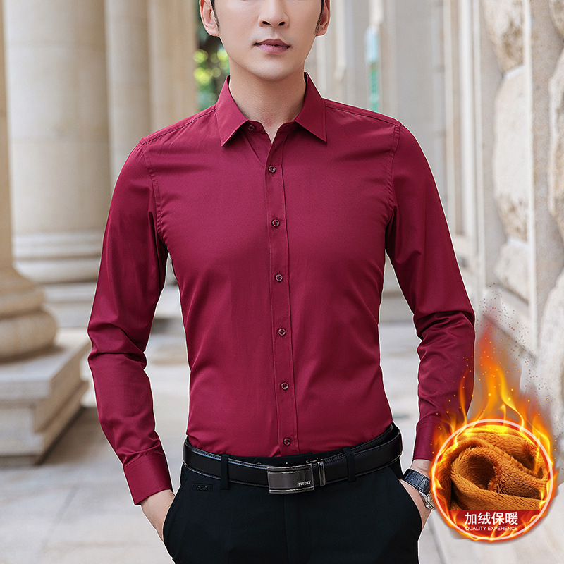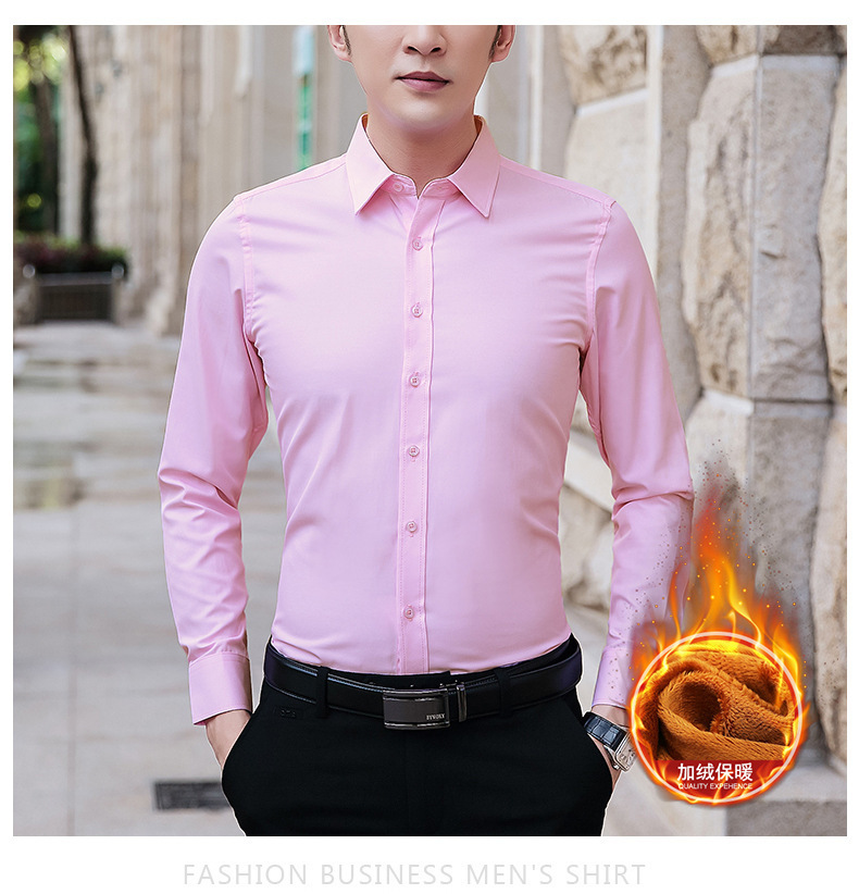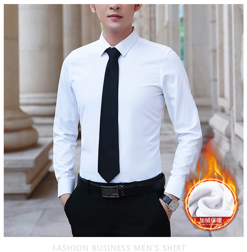 가을과 겨울 남자 양털 두꺼운 긴팔 셔츠 남성 비즈니스 작업 슬림핏 청소년 원피스 화이트 셔츠