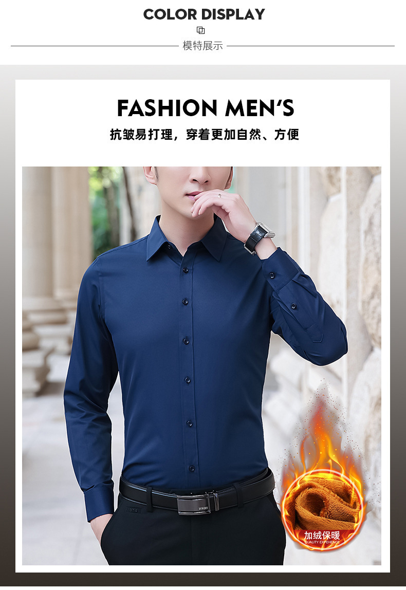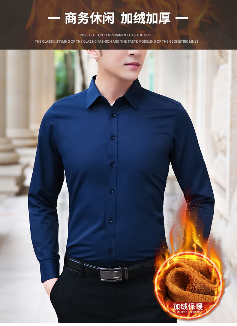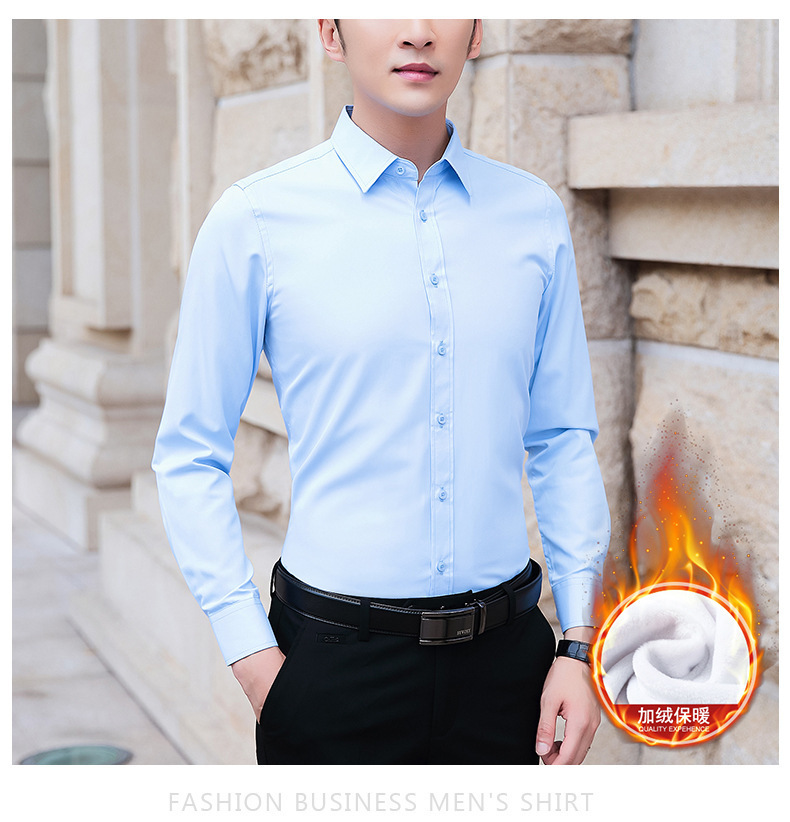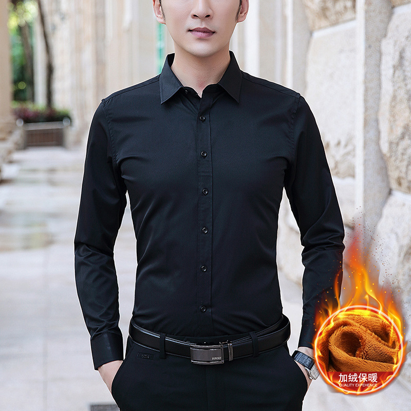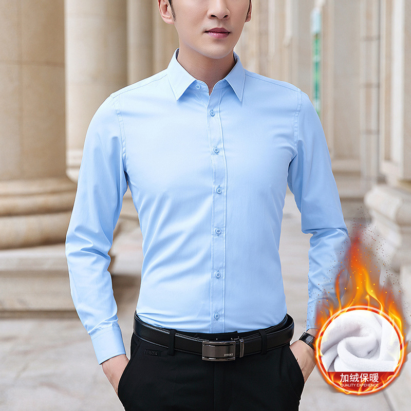 가을과 겨울 남자 양털 두꺼운 긴팔 셔츠 남성 비즈니스 작업 슬림핏 청소년 원피스 화이트 셔츠스토어 가기