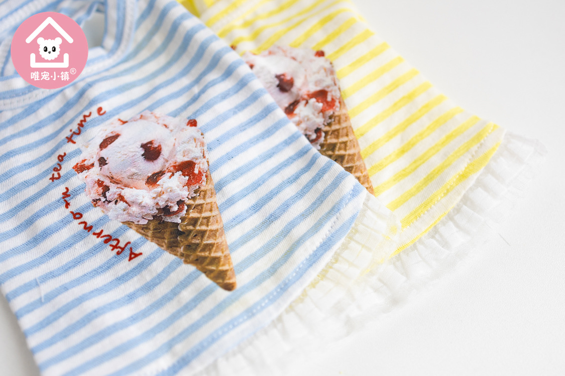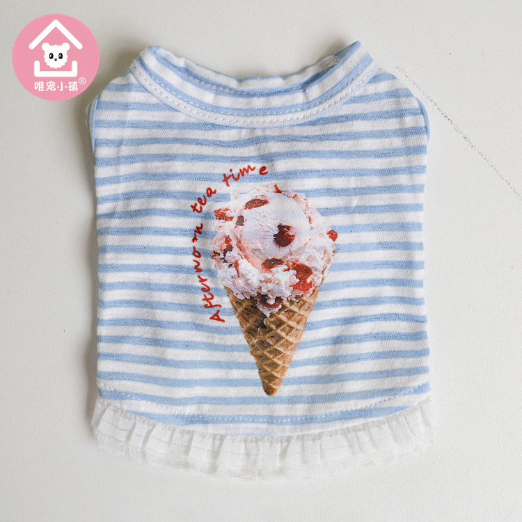 국경 새 봄과 여름 만화 줄무늬 조끼 개 두 다리 옷 테디 중소 개 애완 동물 옷 공장