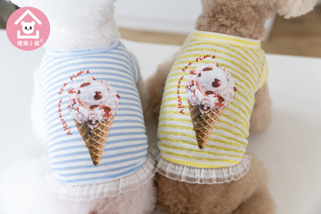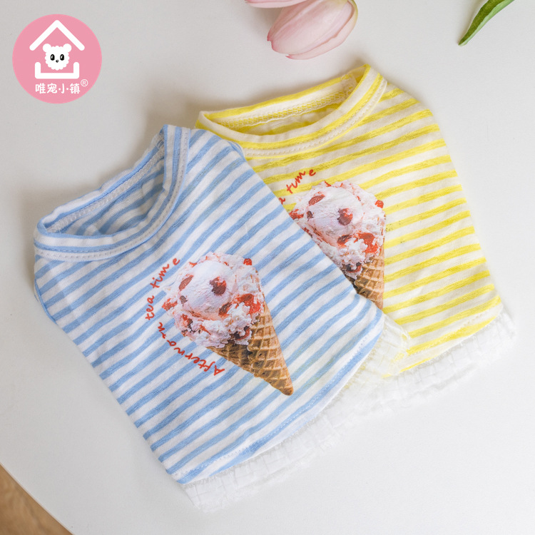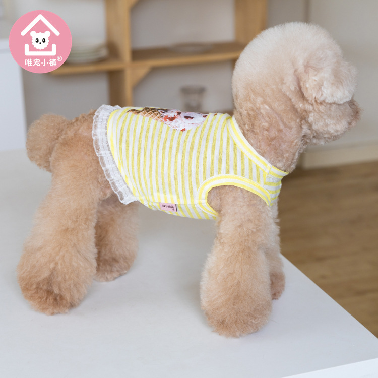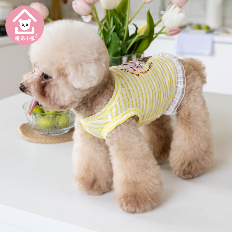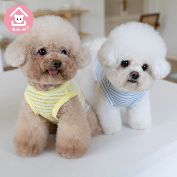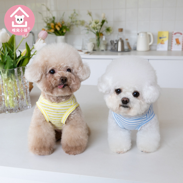 국경 새 봄과 여름 만화 줄무늬 조끼 개 두 다리 옷 테디 중소 개 애완 동물 옷 공장스토어 가기