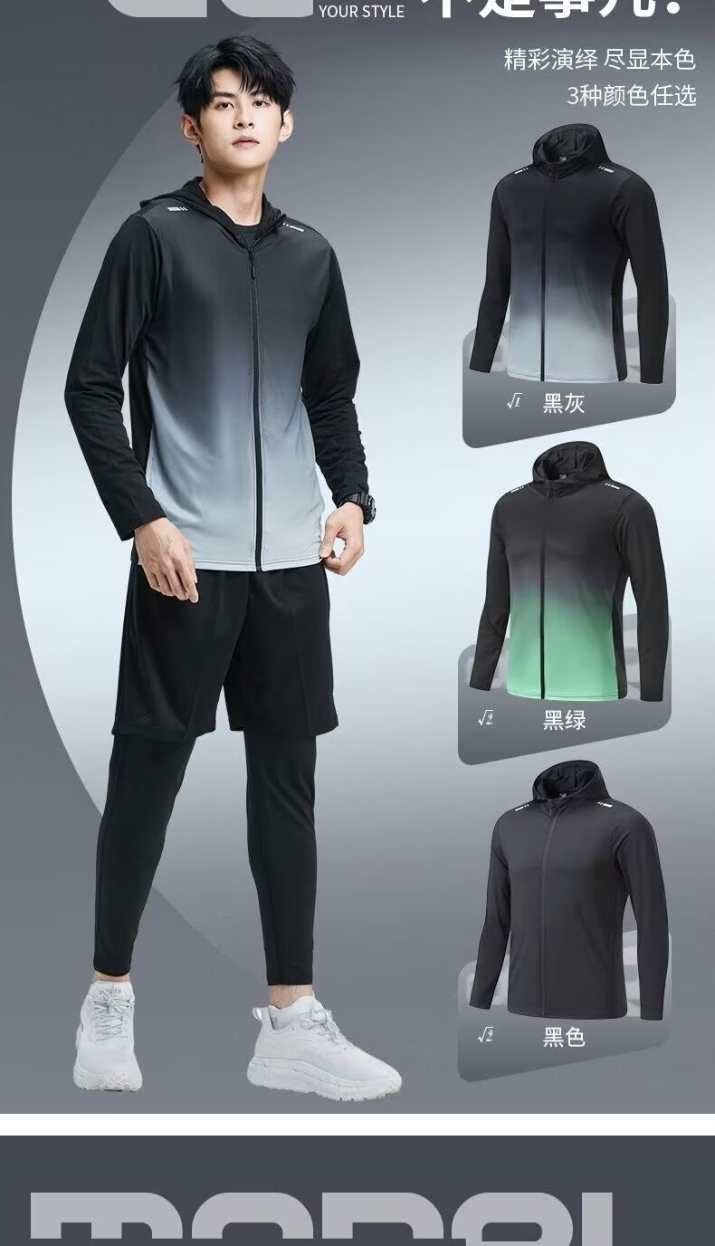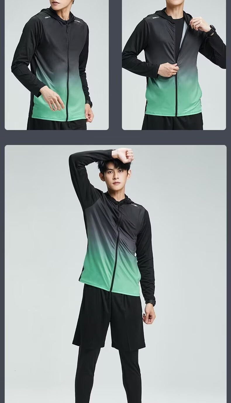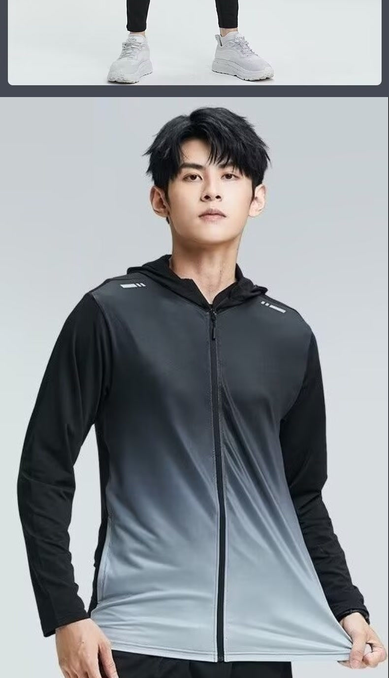 스포츠 태양 보호 의류 남성 피트니스 야외 달리기 아침 달리기 의류 승마 훈련 후드 포켓 경량 커플의 빠른 건조 옷