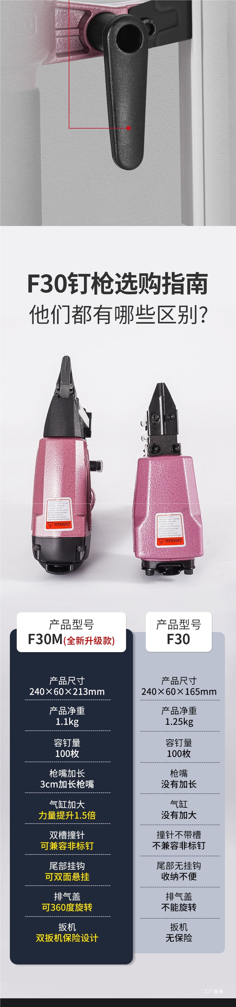 Yuanfa F30M 긴 입 네일 건 30 에어 네일 건 카펜터 네일 그랩 장식 네일 건 도구 직접 배기 구매