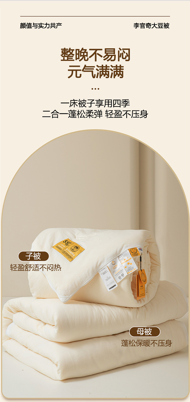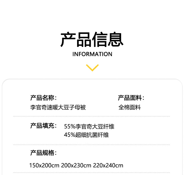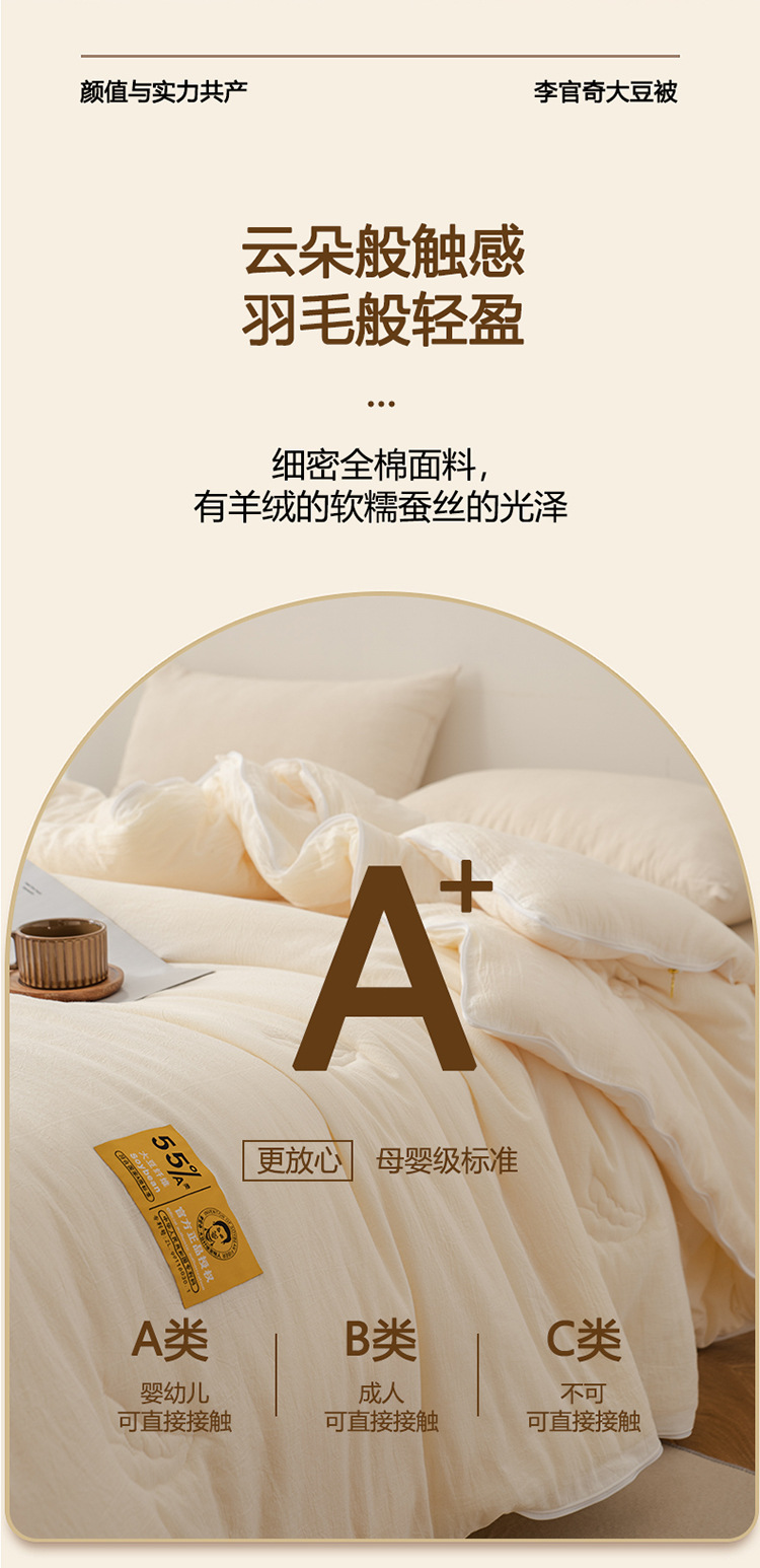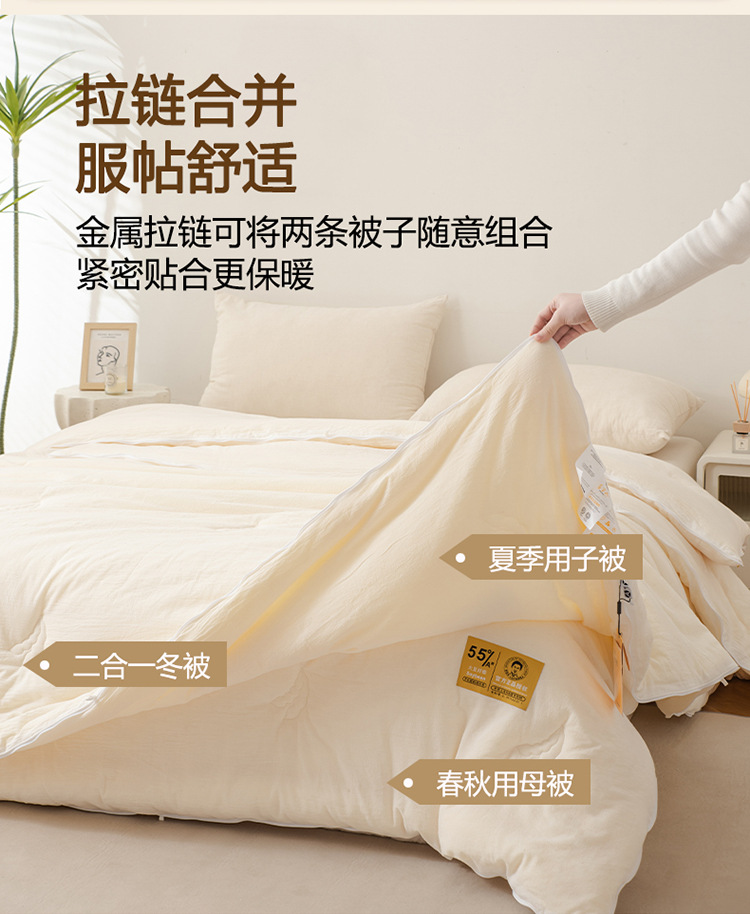 공식 정품 Li Guanqi Cotton 55% 콩 지퍼 2 대 1 침수 이불 클래스 A 항균 봄 가을 겨울 이불 여름