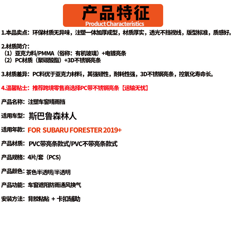 • Forester 2019 PC에는 실버 엣지 밝은 스트립 로고가 있으며 두꺼운 창문 비 또는 빛 방패 국경 특별