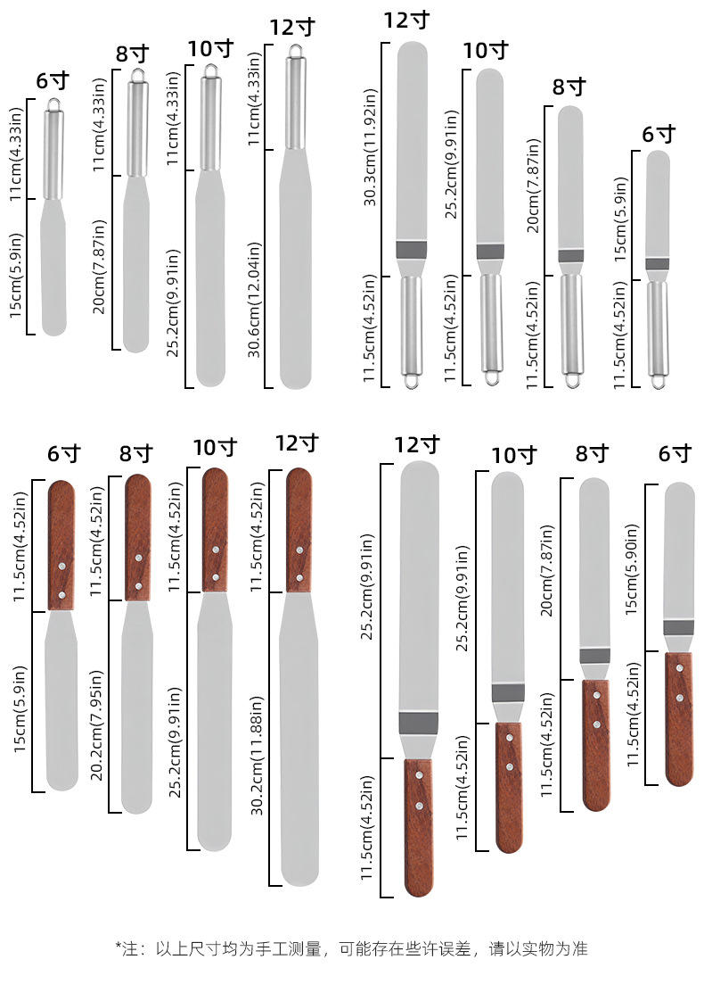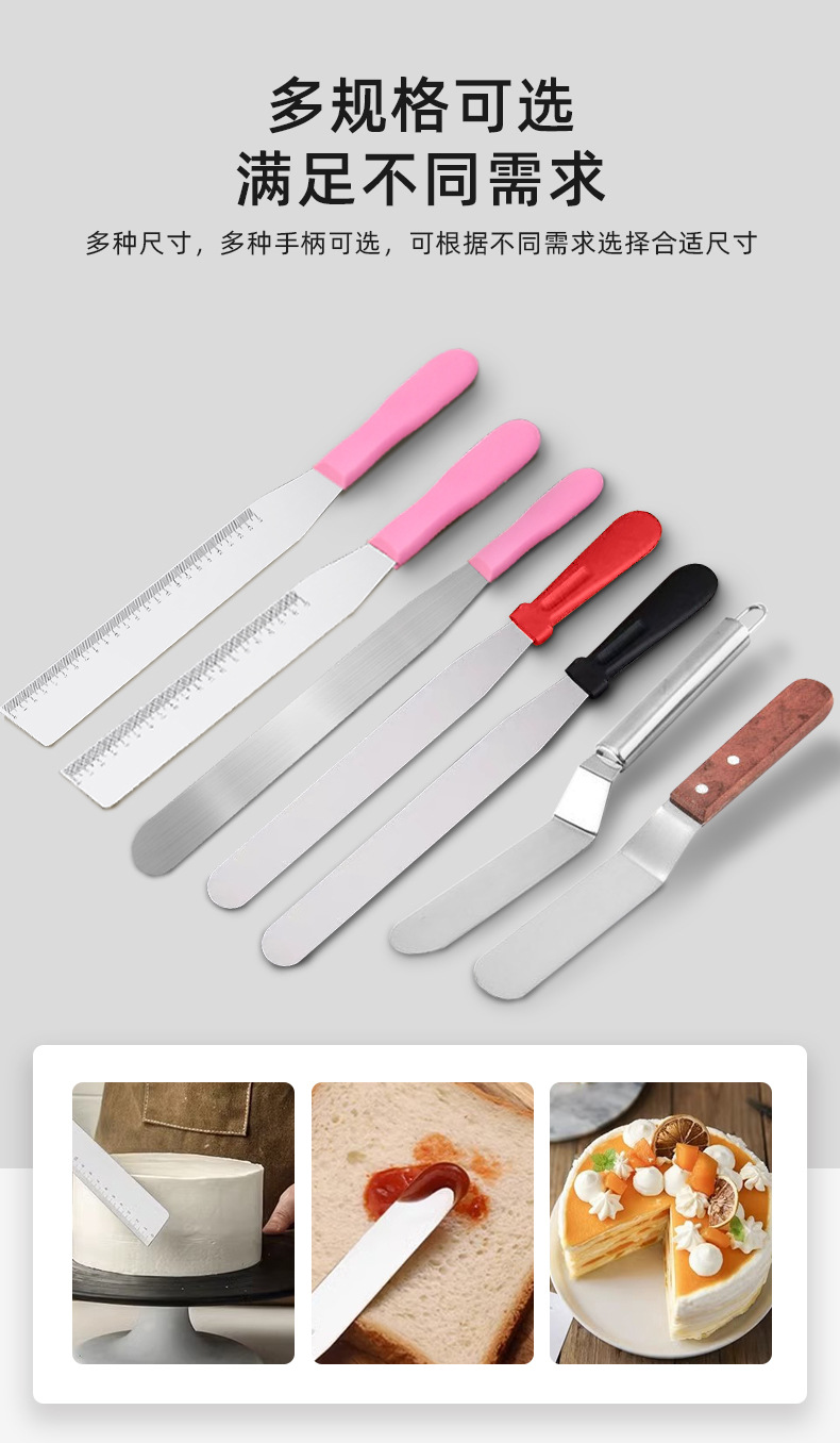 스테인레스 스틸 두꺼운 스케일 케이크 스트레이트 키스 플라스틱 손잡이 주걱 베이킹 크림 나무 손잡이 주걱스토어 가기