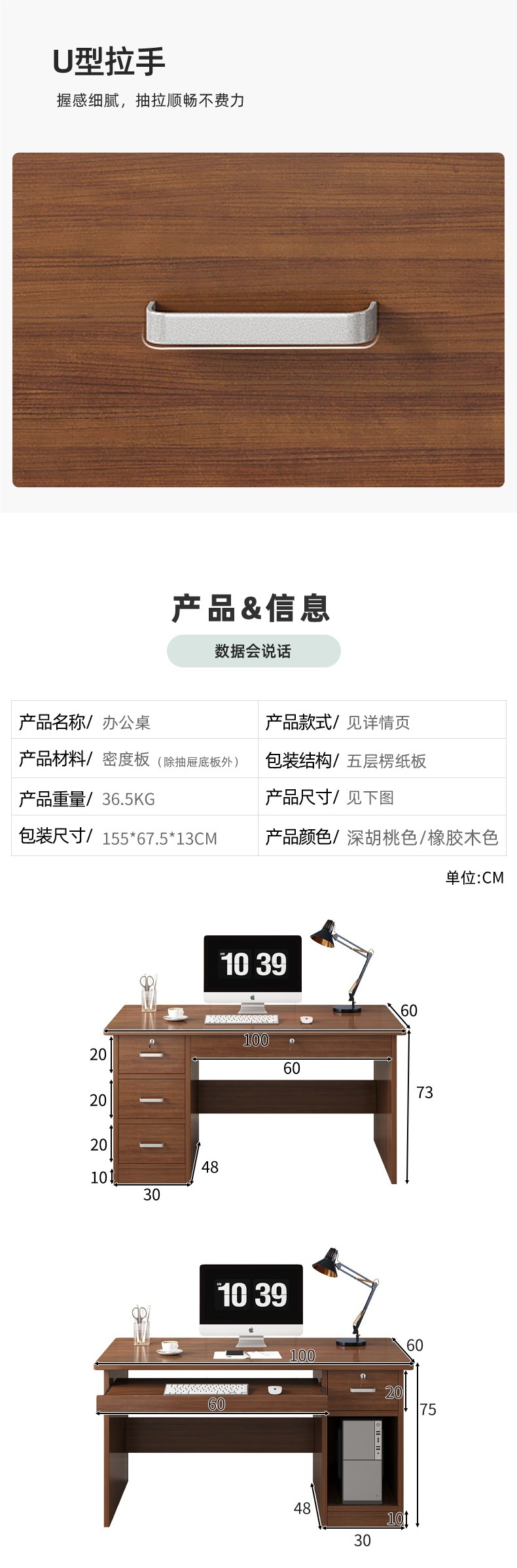 • +크로스보더+[키보드가 포함된 다크 월넛 카메라 위치] 140×60×73cm