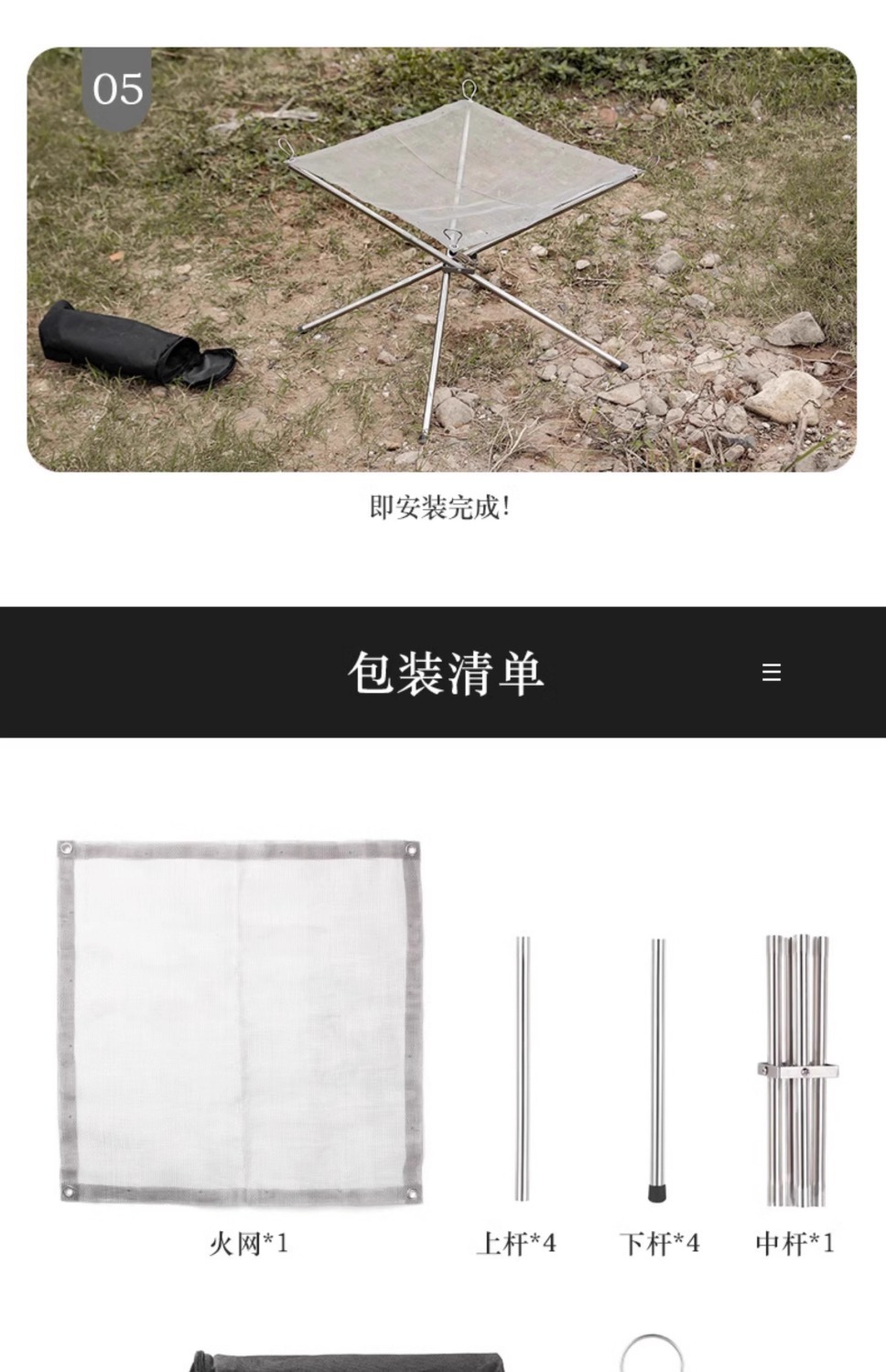 • ✿☀[중형] 캠프파이어 스탠드 풀세트 [그릴망 1개] 메쉬 표면 40*40 (무료 평면 쓰레기봉투 롤)✿☀