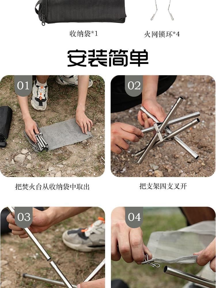 야외 조립 캠핑 스토브 모닥불 스토브 포켓 풀 세트 불타는 테이블 장작 스토브 야외 휴대용 접이식 필드