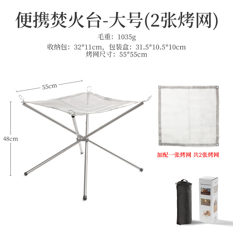 • ✿☀[대형] 캠프파이어 스탠드 풀세트 [그릴망 1개] 메쉬 표면 55*55 (무료 평면 쓰레기봉투 롤)✿☀