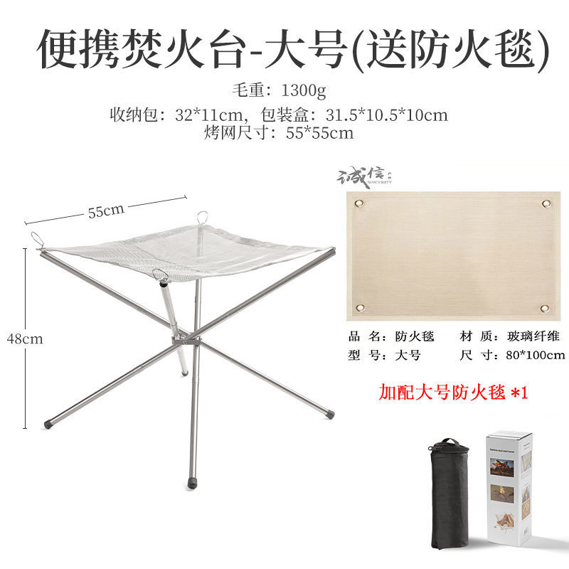 • ✿☀[중형] 캠프파이어 스탠드 풀세트 + 58*80 방화 담요 (무료 평면 쓰레기 봉투 롤)✿☀