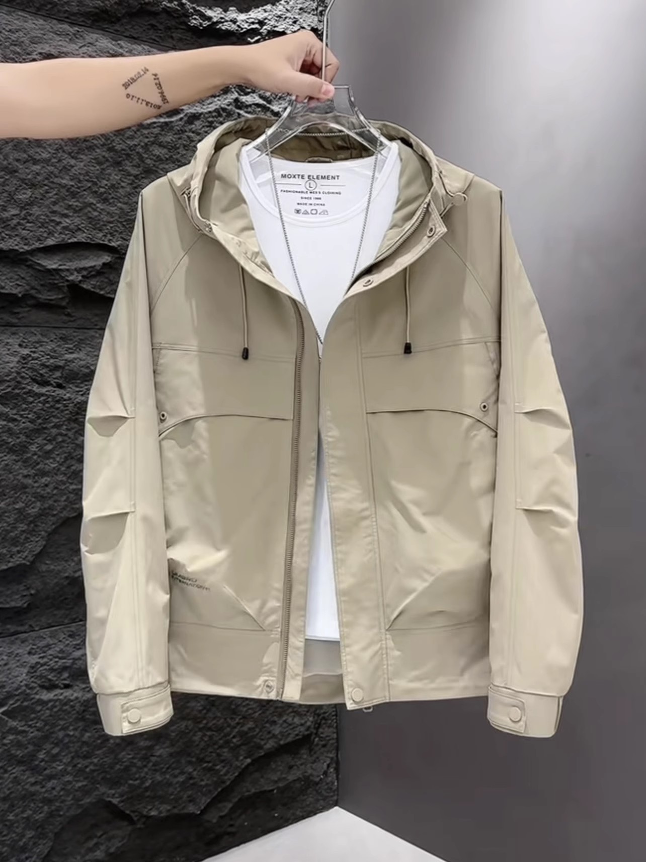 봄과 가을 새로운 트렌디 브랜드 크록 후드 자켓 남자 느슨한 올매치 야외 캐주얼 방풍 재킷 탑