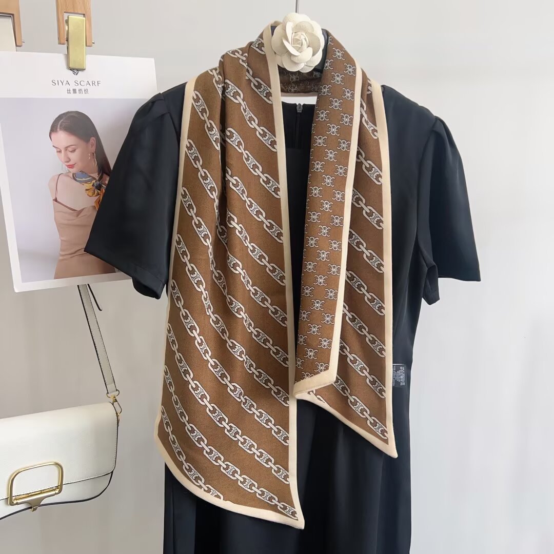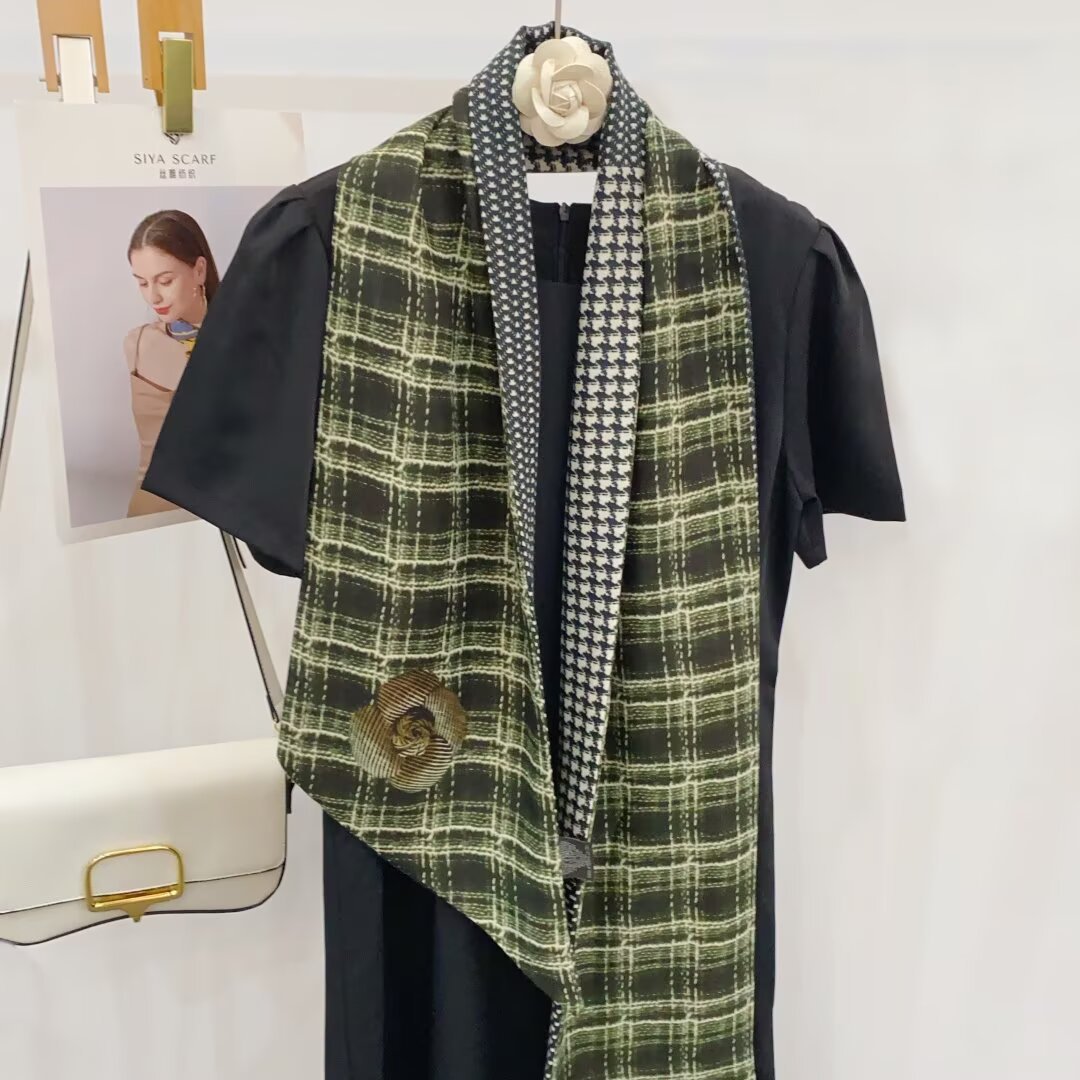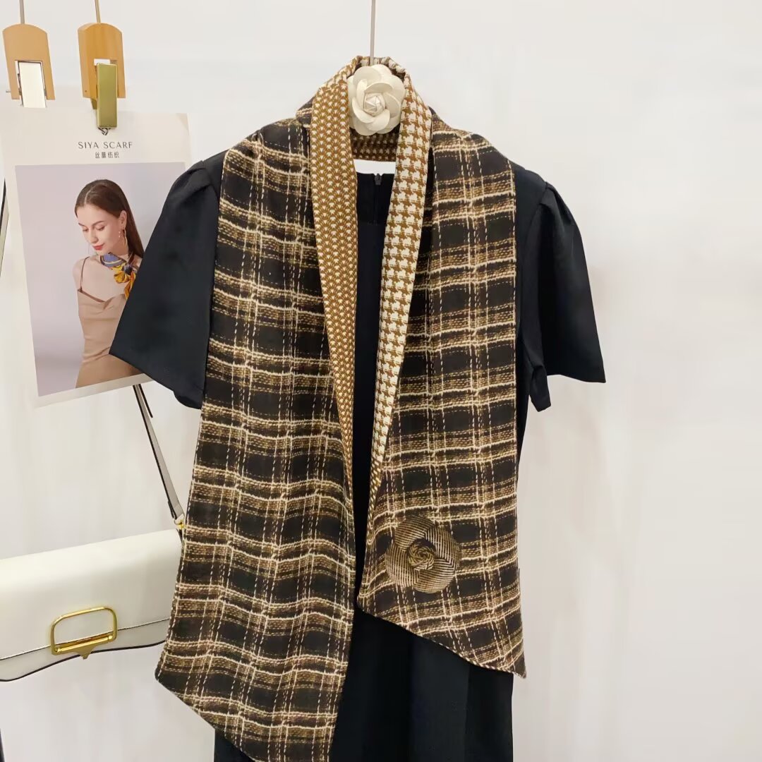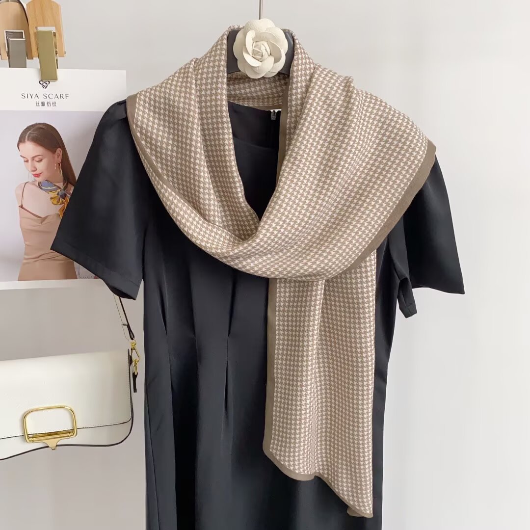 2025 년 봄 새로운 국경 헤링본 포인팅 리본 스카프 여성 전문 의류 정렬 하이 엔드 스카프스토어 가기