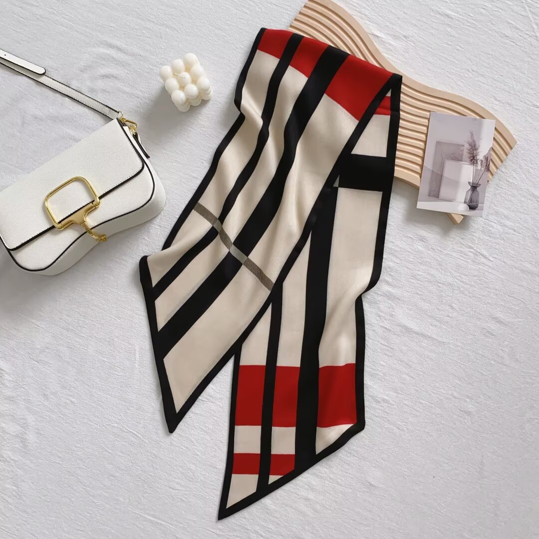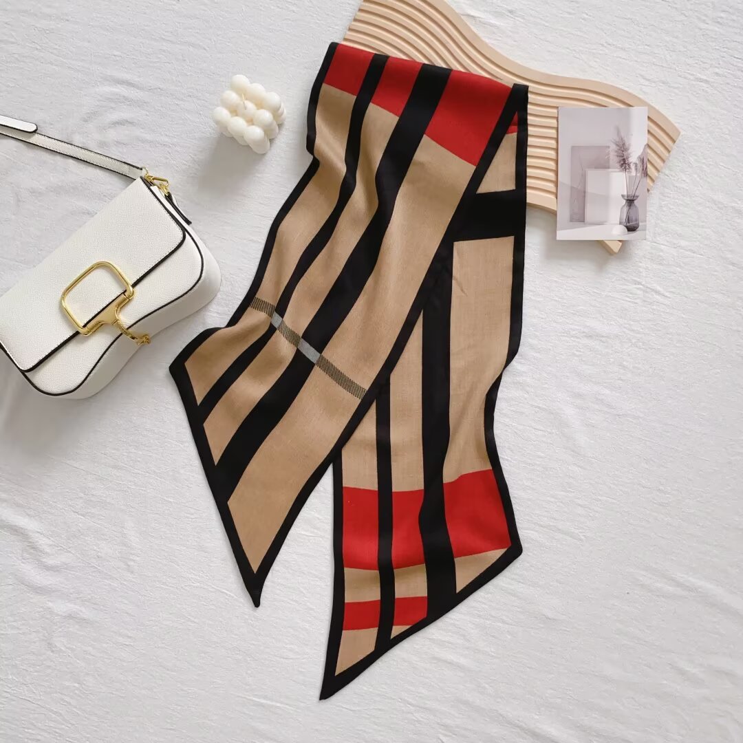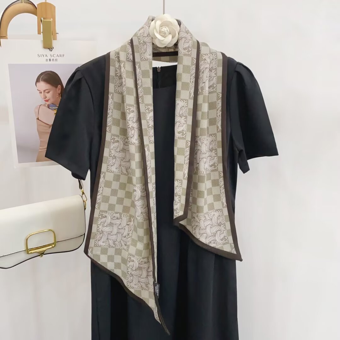 2025 년 봄 새로운 국경 헤링본 포인팅 리본 스카프 여성 전문 의류 정렬 하이 엔드 스카프