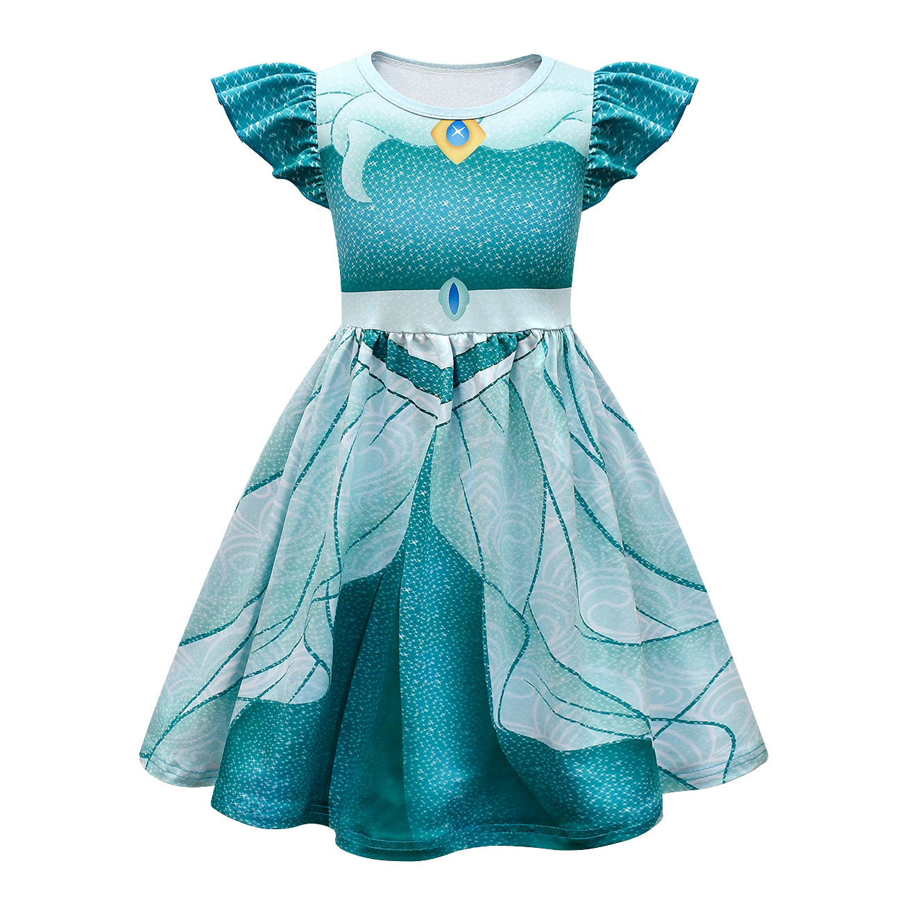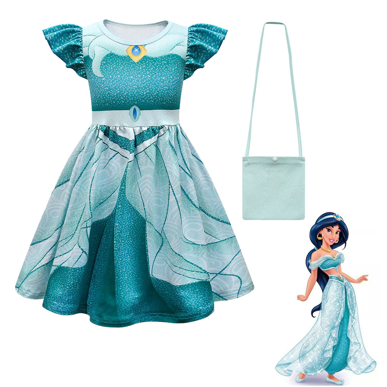 여름 자스민 공주 자스민 소녀 플라잉 슬리브 원피스 A-라인 원피스 어린이 원피스 80763스토어 가기