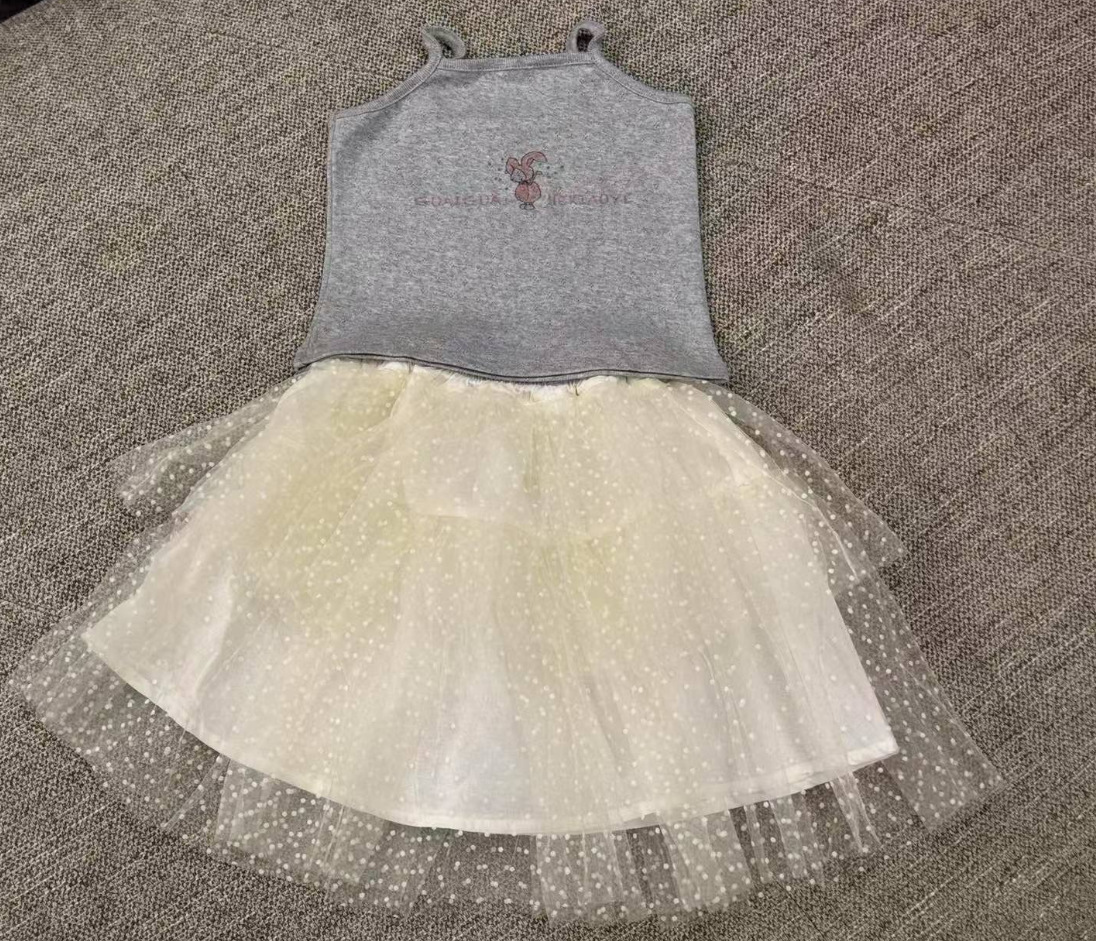 소녀 니트 슬링 레이스 스커트 어린이 2025 여름 새로운 아기 소녀 투피스 세트스토어 가기