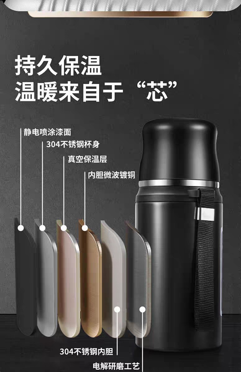 새로운 304 스테인레스 스틸 진공 찻잔 야외 휴대용 휴대용 등반가 대용량 사업 모든 강철 냄비