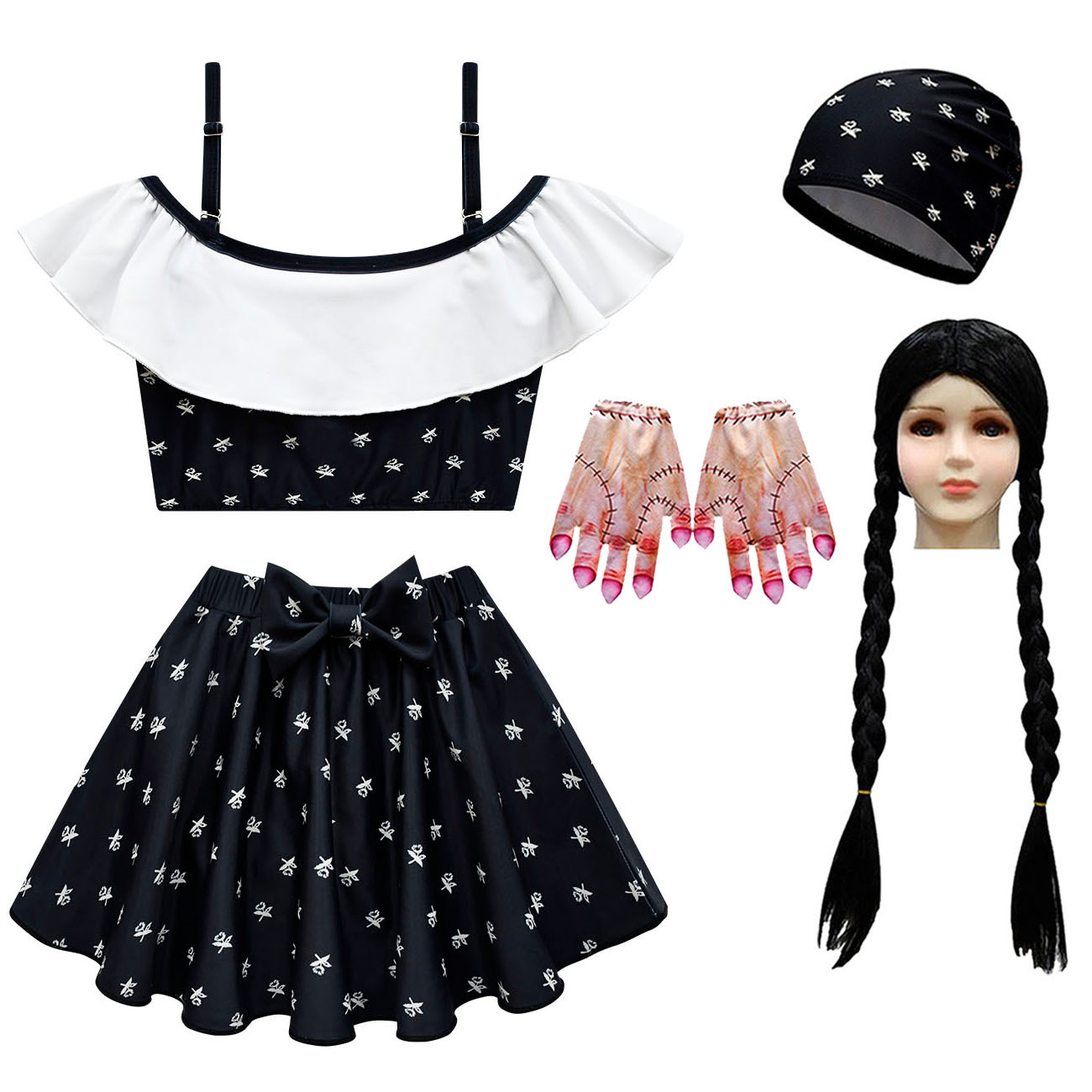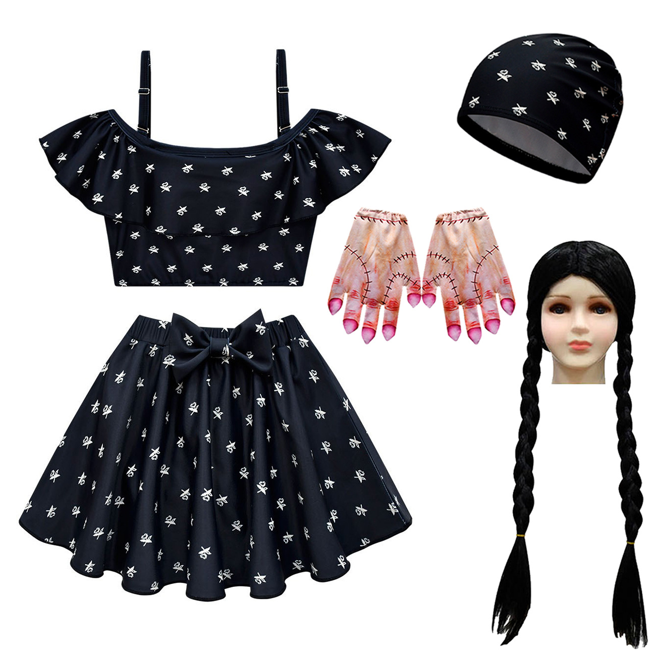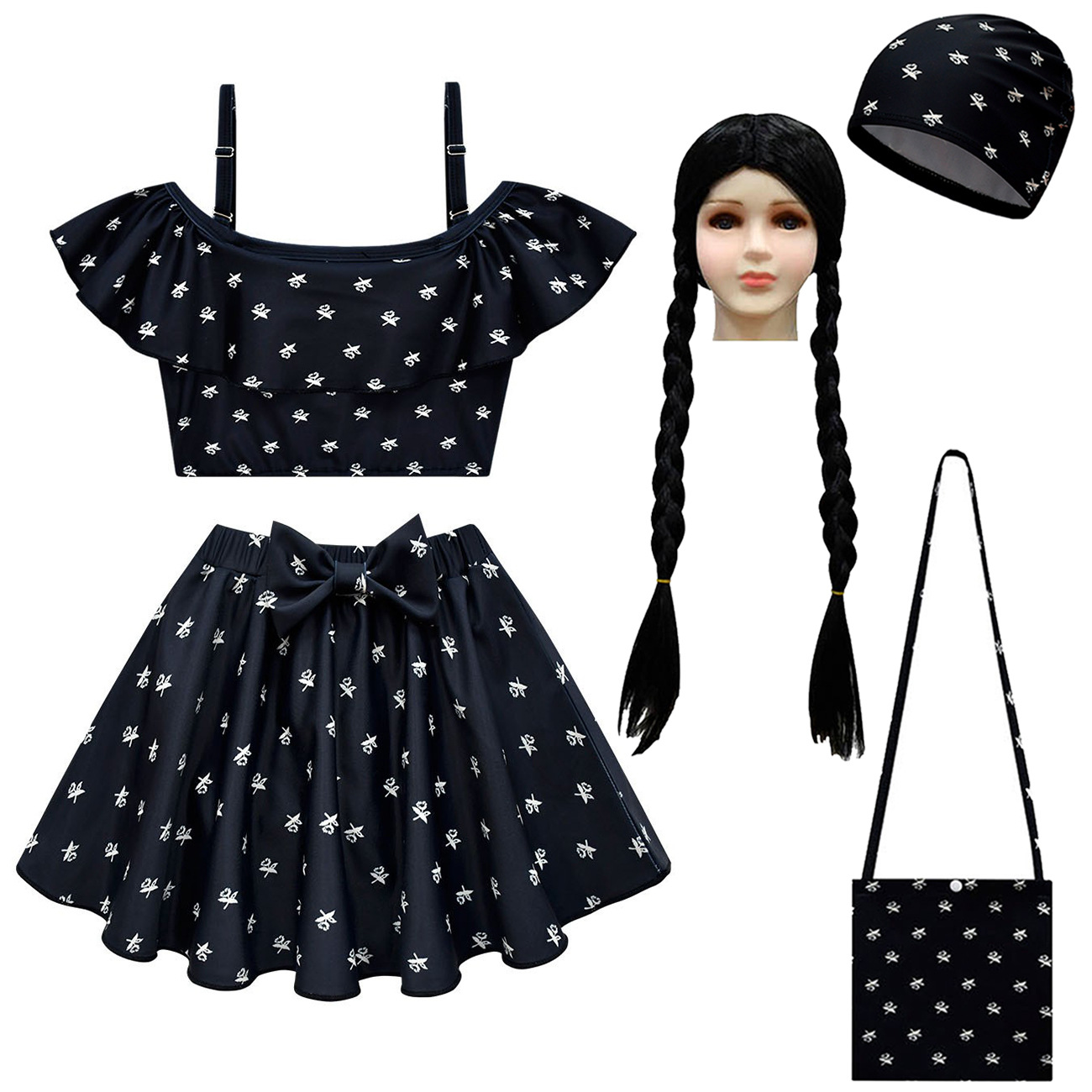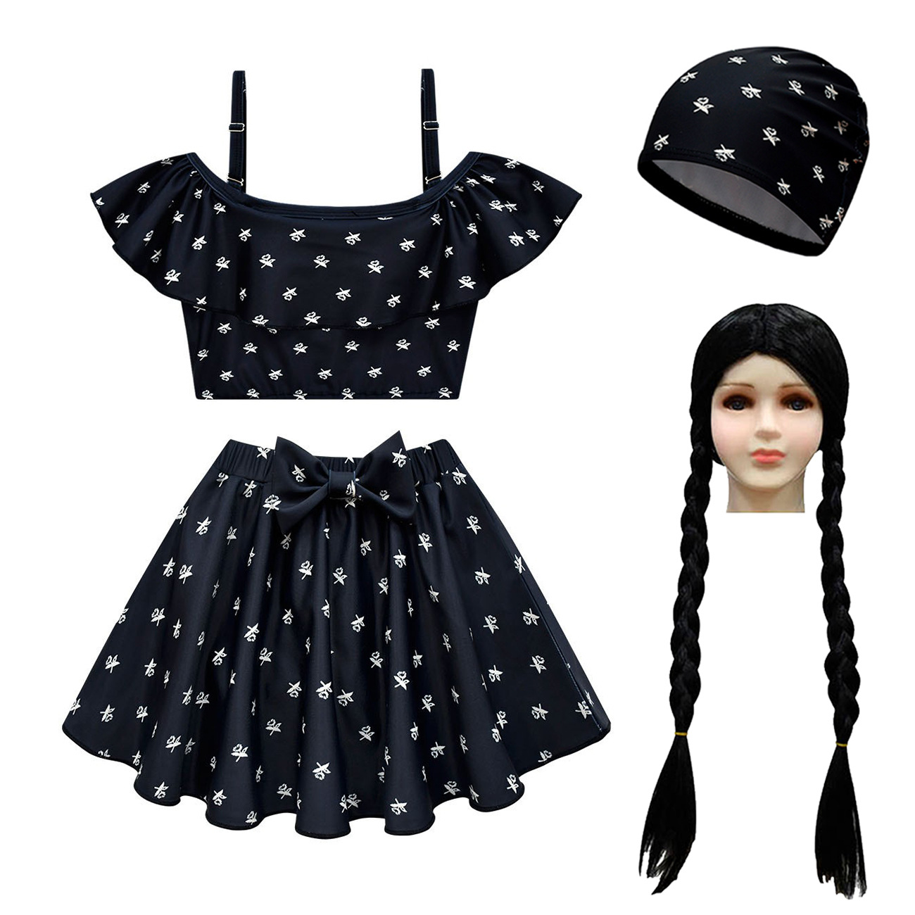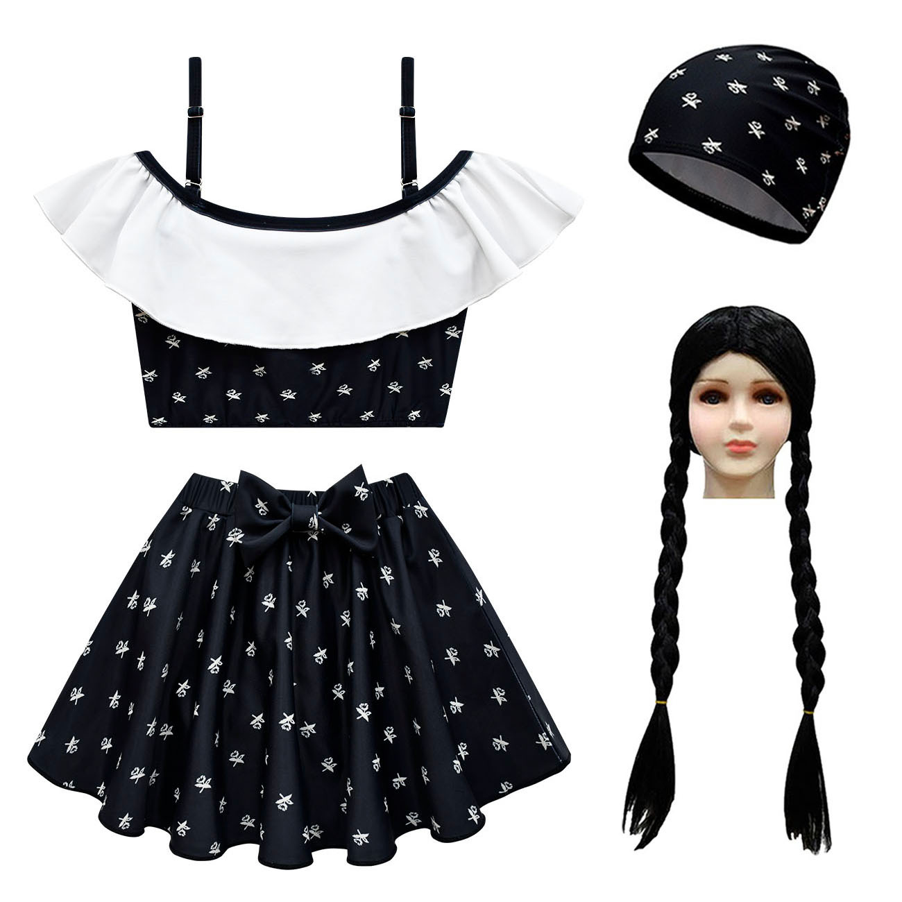 소녀 여름 분할 수영복 소녀 원 어깨 수영복 가발 세트 20310