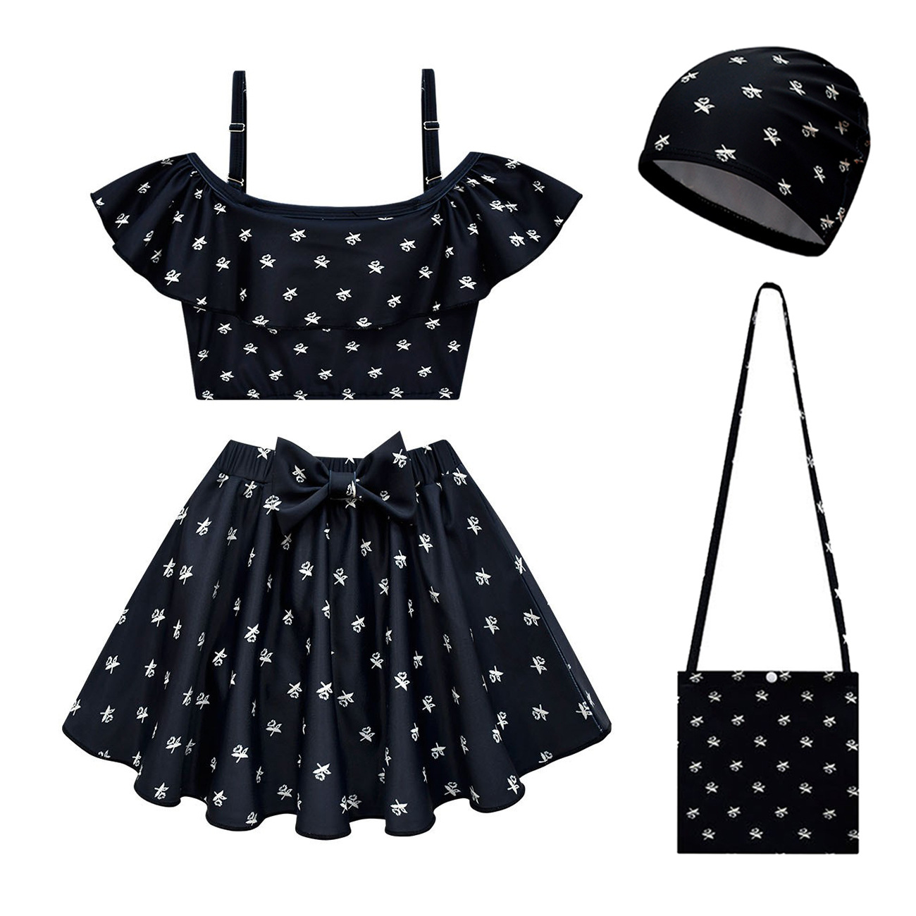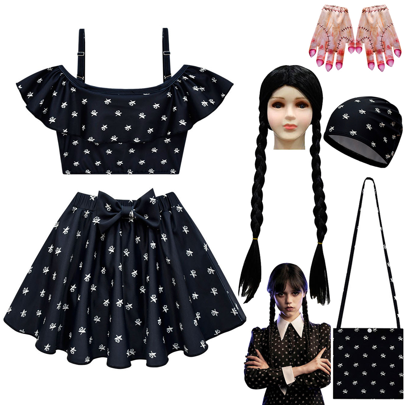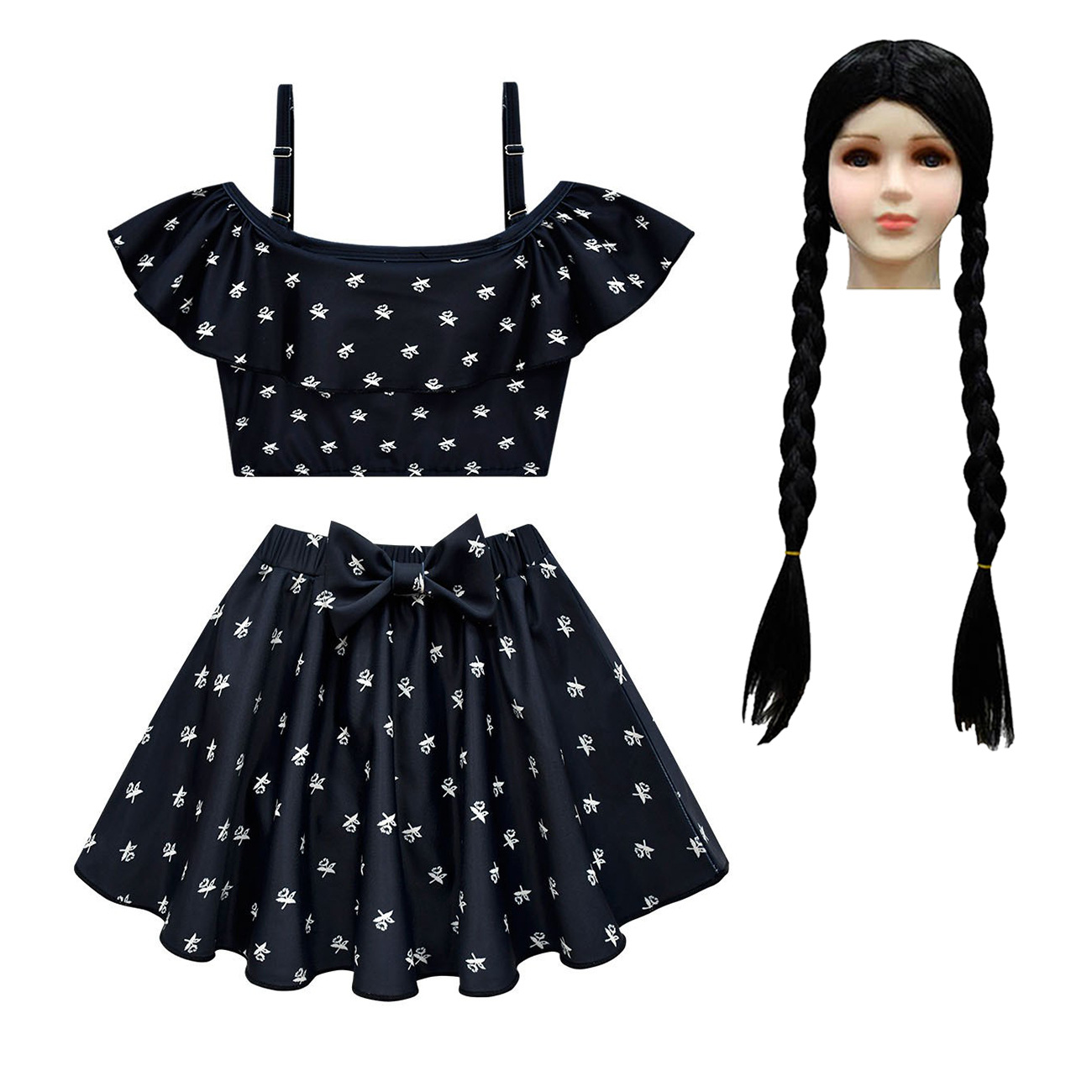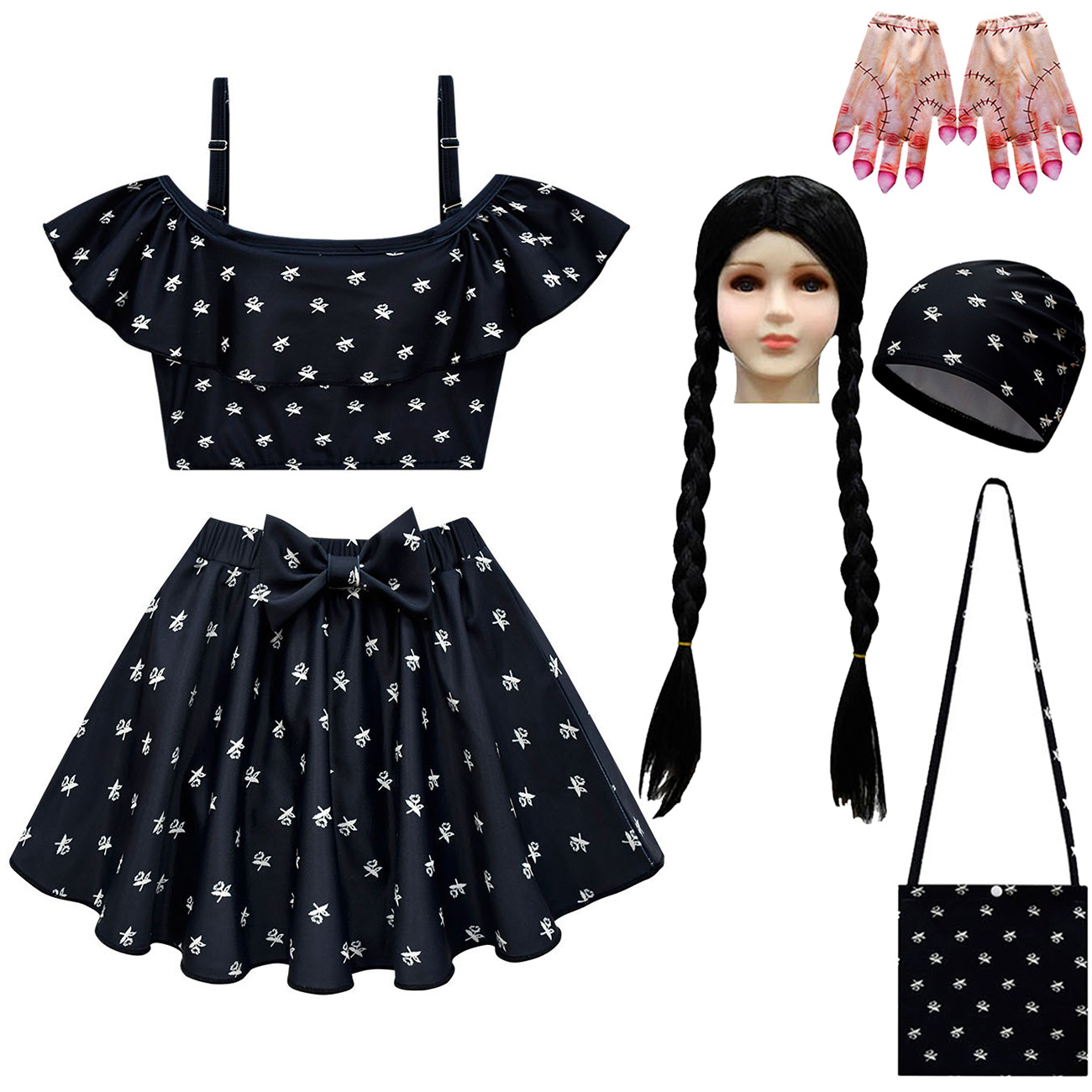 소녀 여름 분할 수영복 소녀 원 어깨 수영복 가발 세트 20310