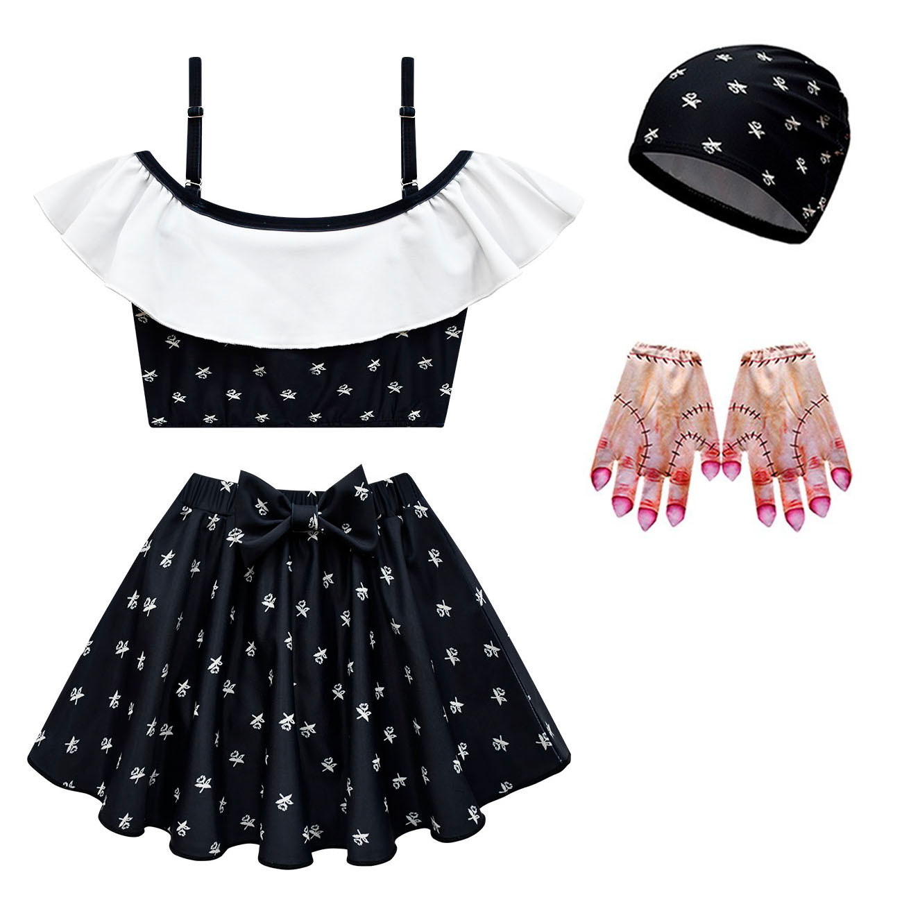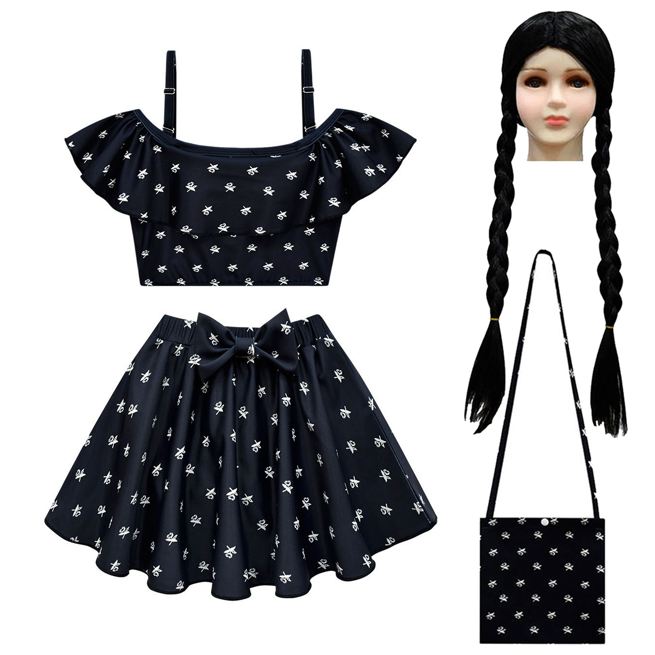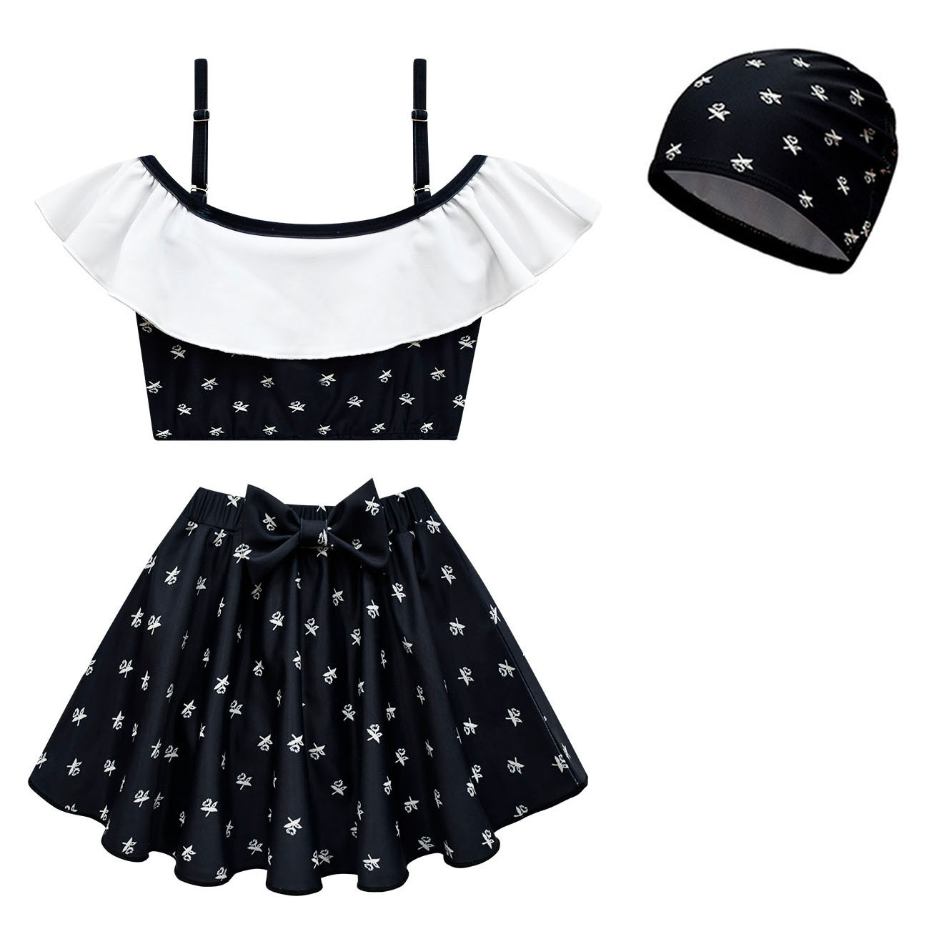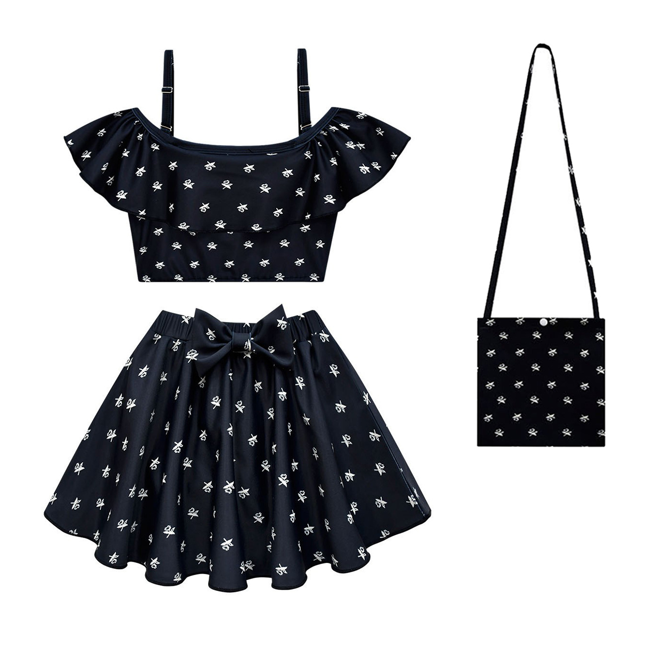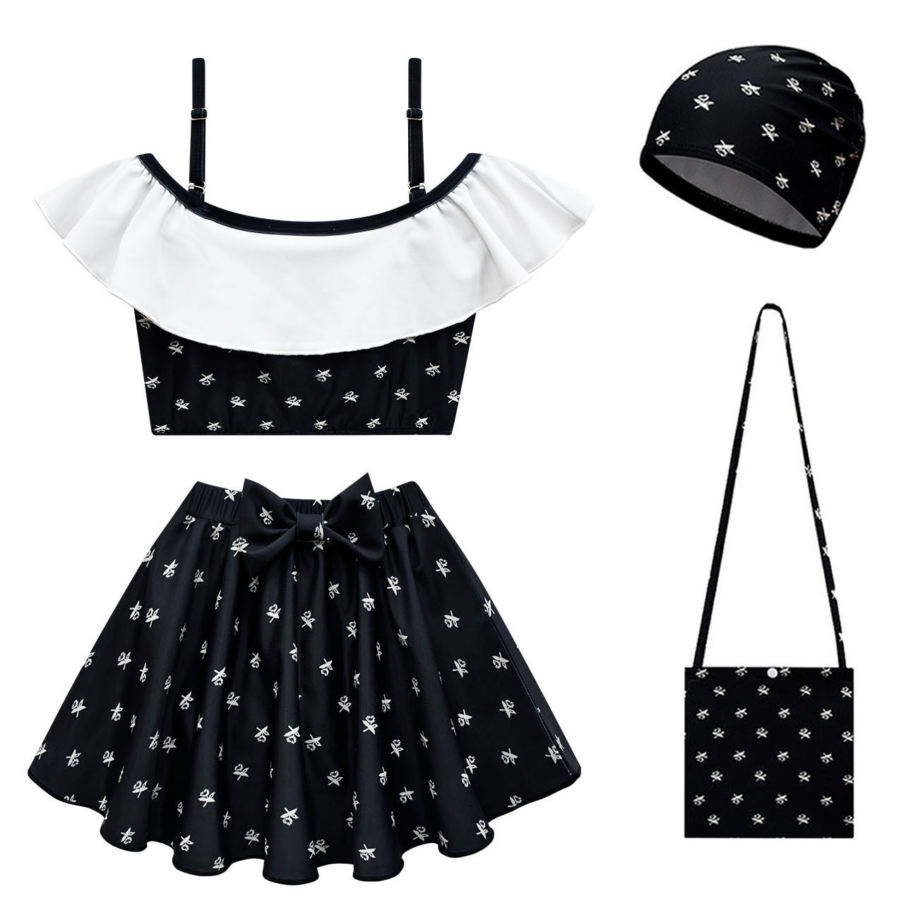 소녀 여름 분할 수영복 소녀 원 어깨 수영복 가발 세트 20310