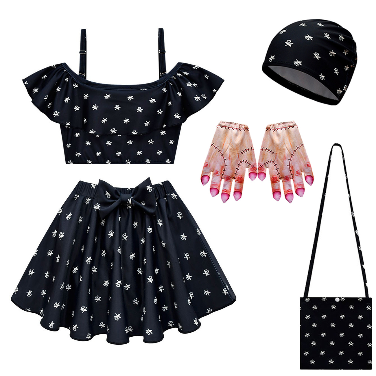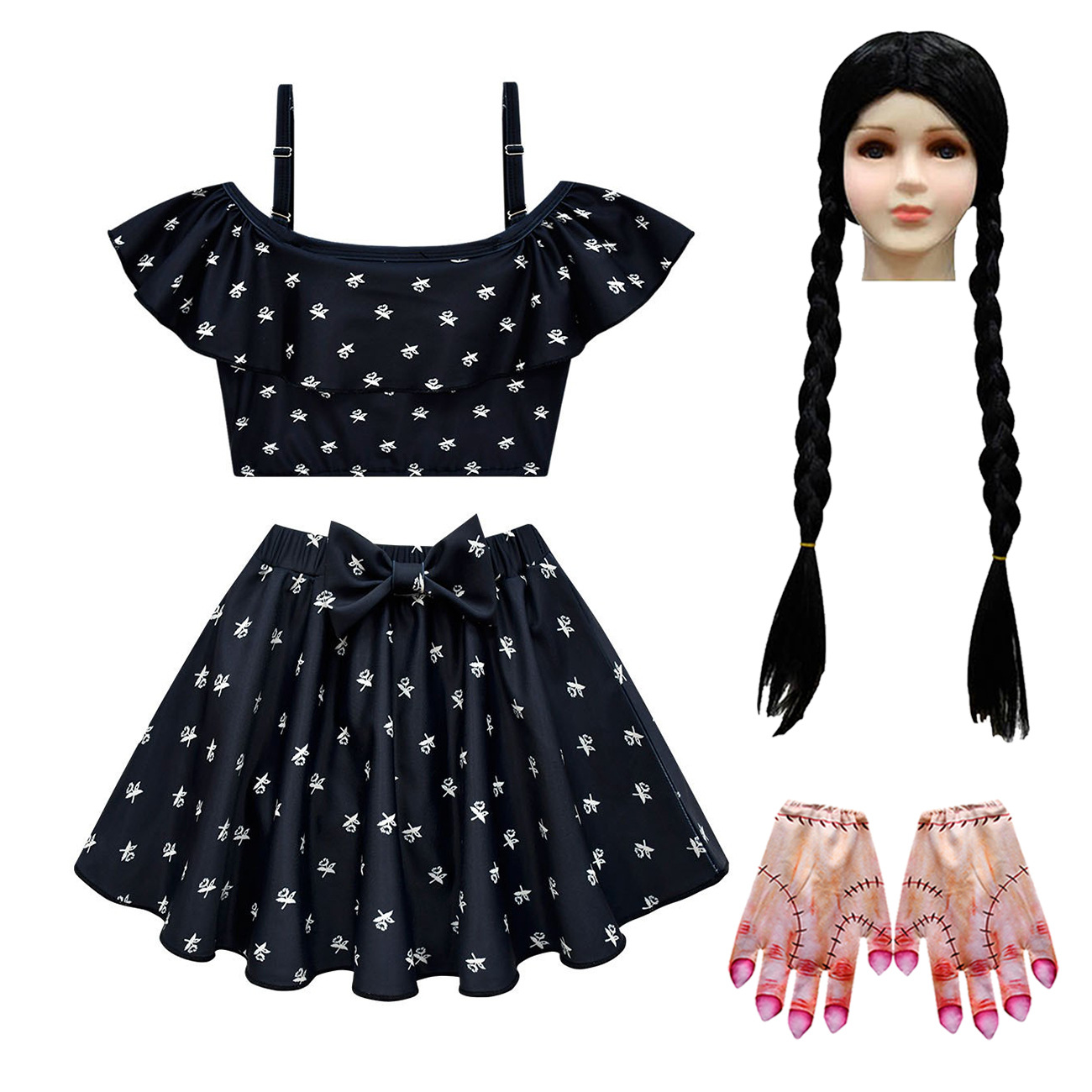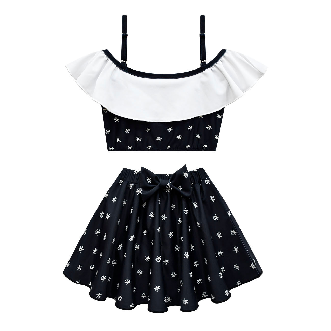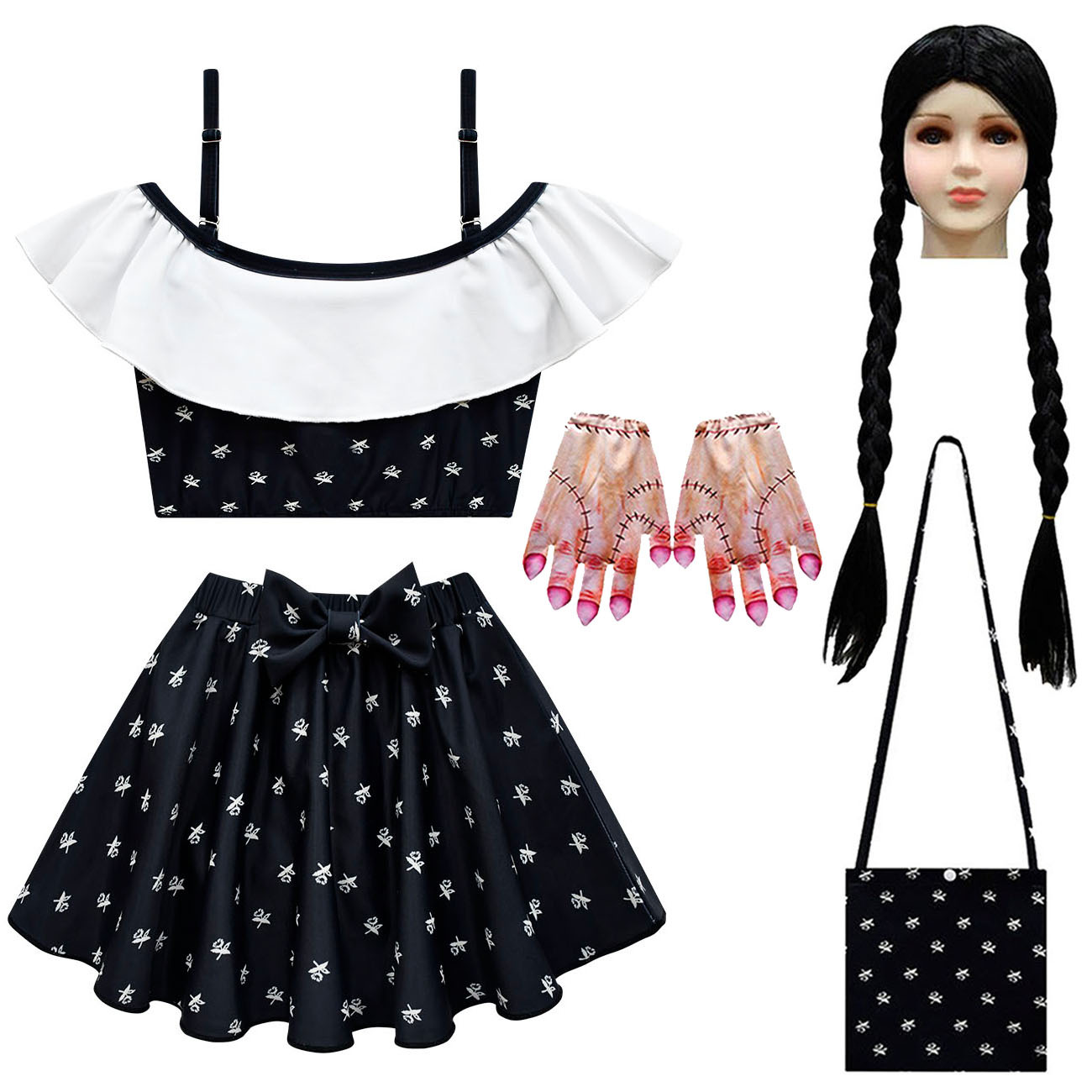 소녀 여름 분할 수영복 소녀 원 어깨 수영복 가발 세트 20310