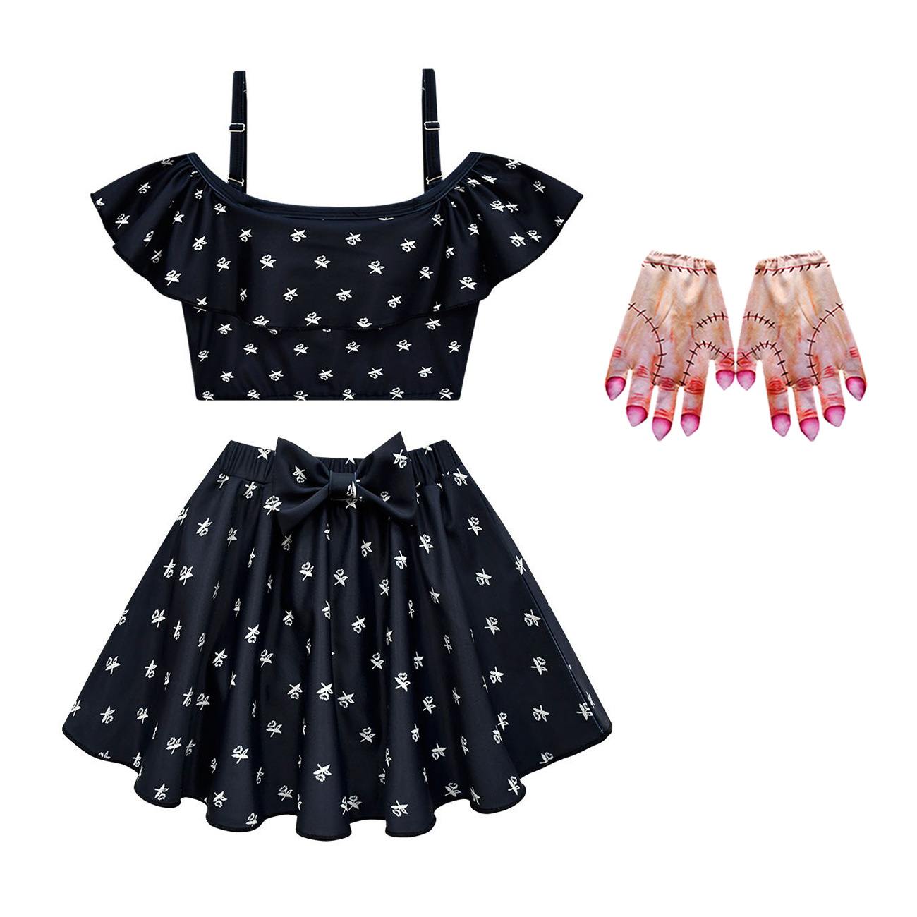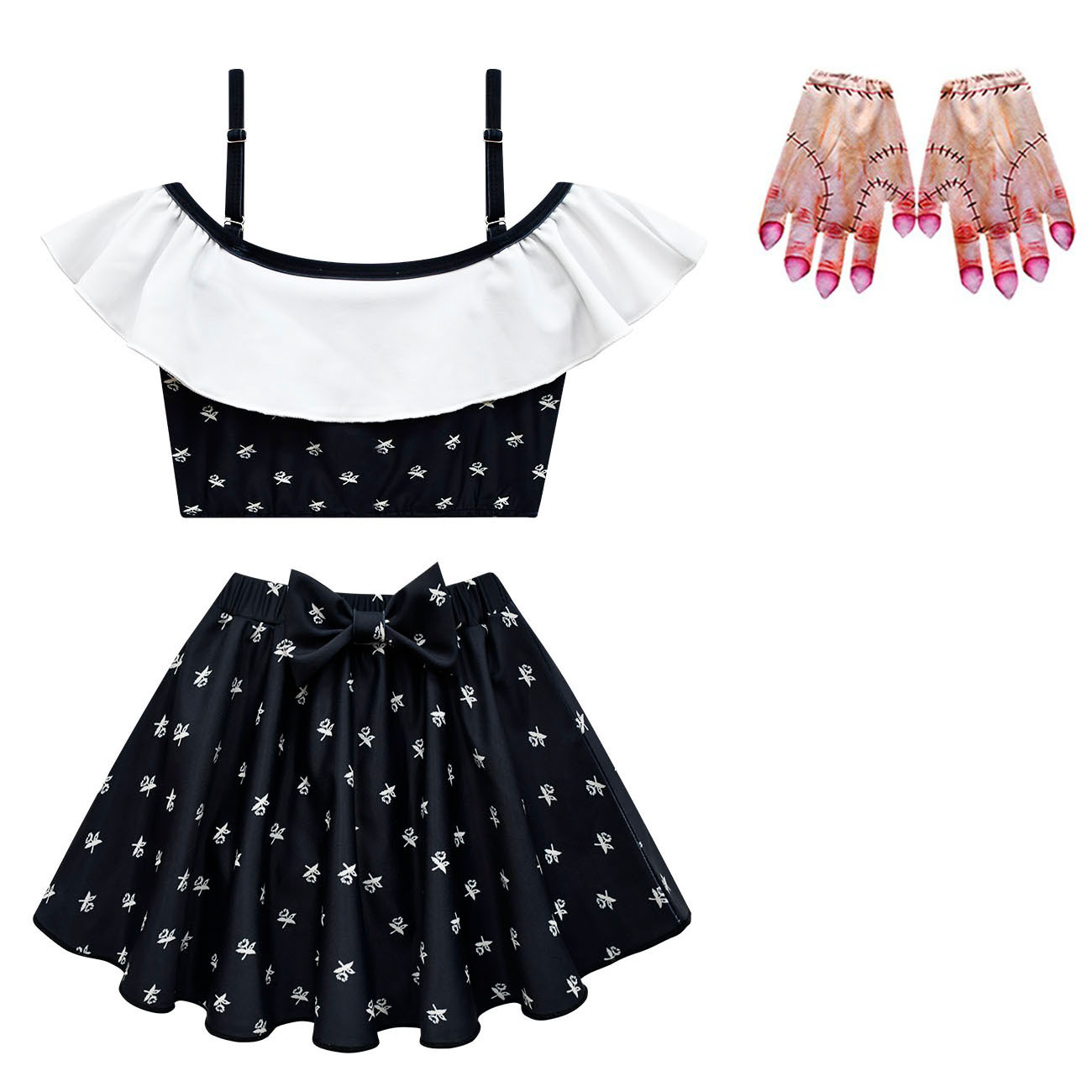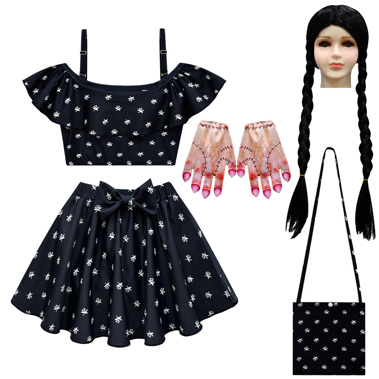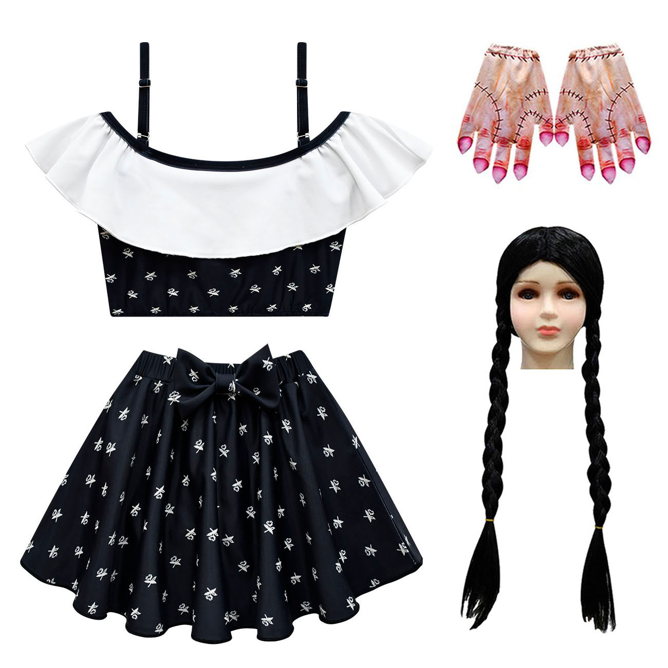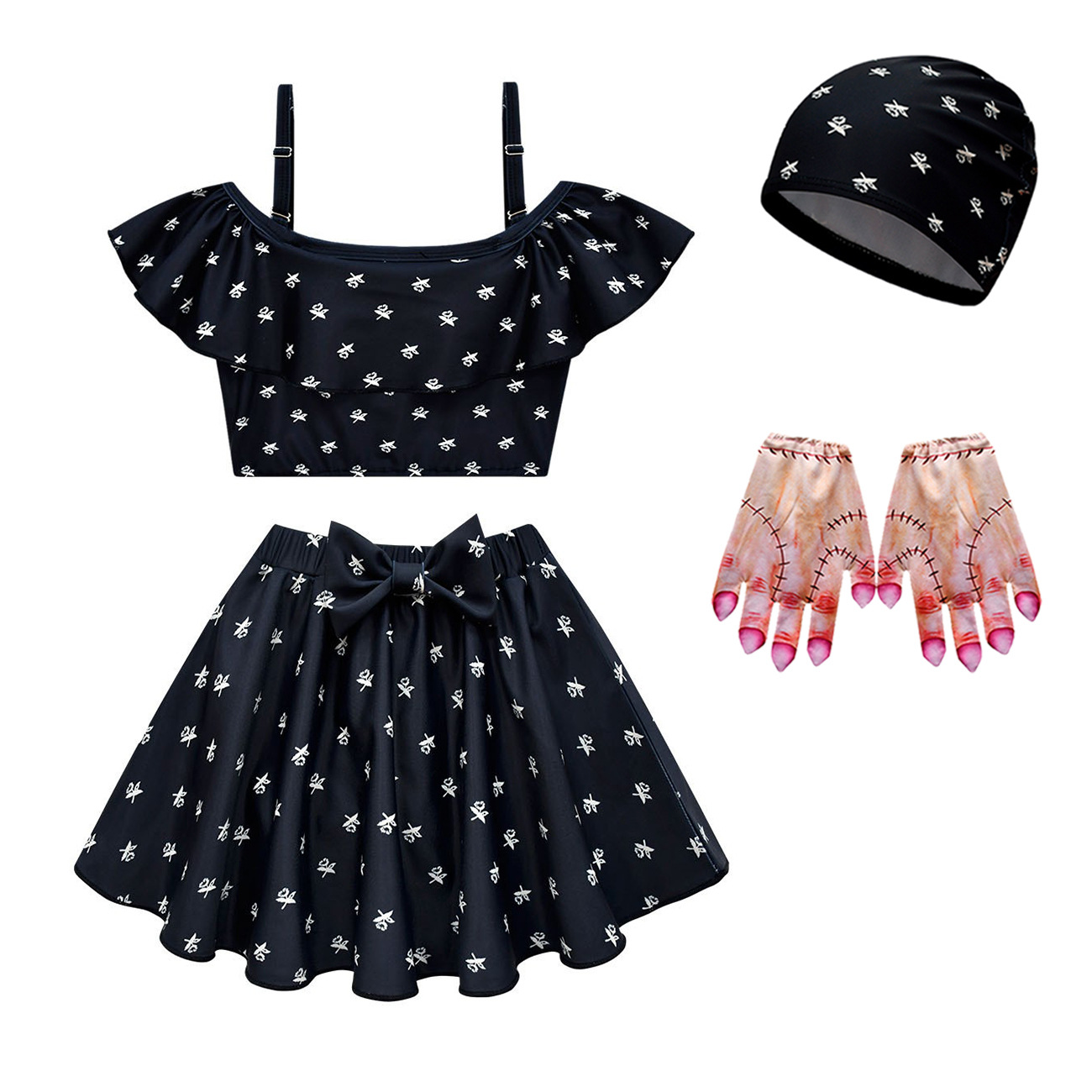 소녀 여름 분할 수영복 소녀 원 어깨 수영복 가발 세트 20310
