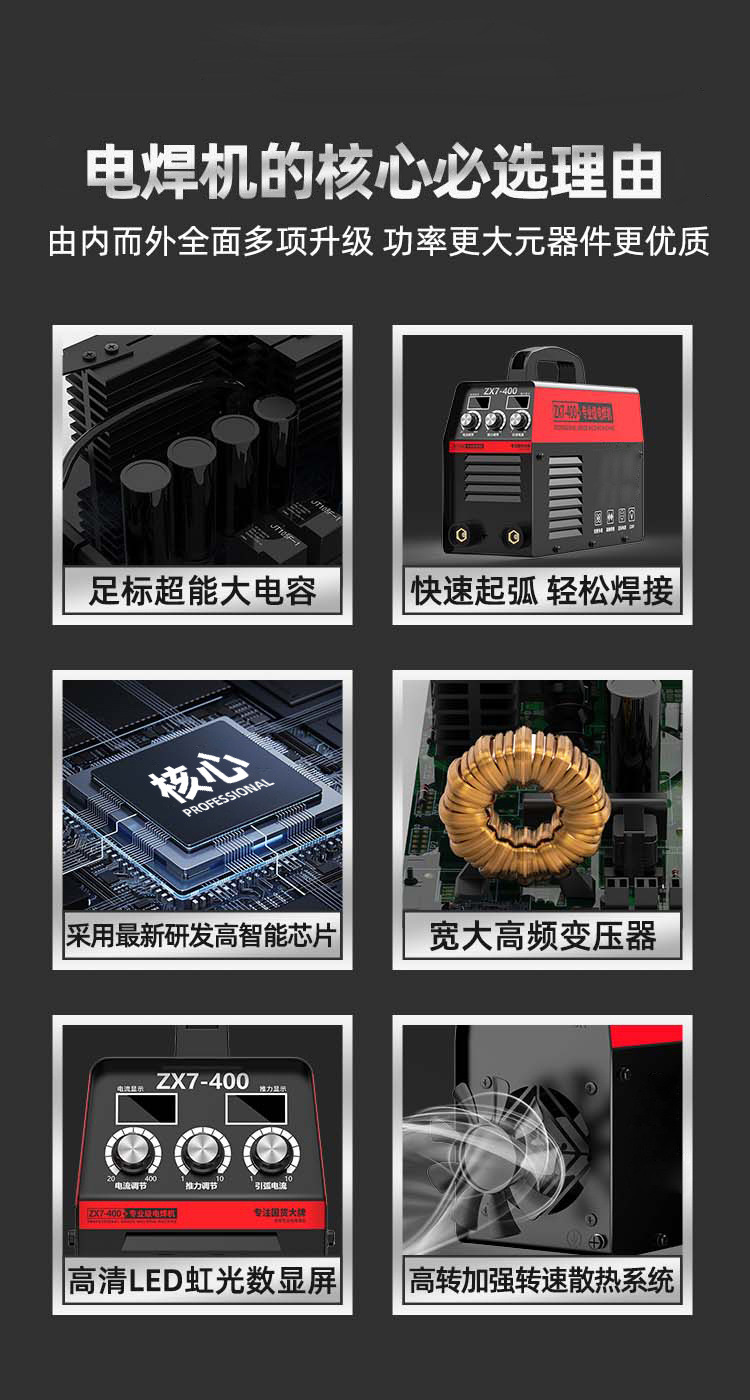 • 400 고효율 용접 [듀얼 마더보드 장착] 다양한 용접 시나리오 - [고품질丨강력한 공장] 빠른 아크 점화를 위한 강력한 전기 및 자기 저항 - 업그레이드 키트