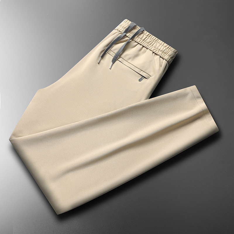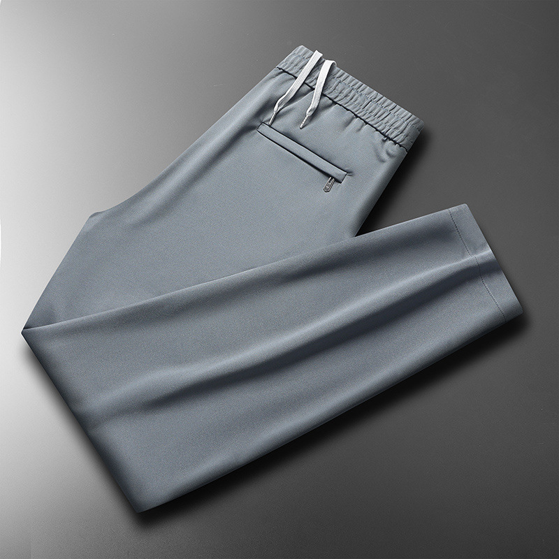 스포츠 쿨 아이스 실크 바지 남성용 여름 얇은 스트레이트 바지 여름 빠른 건조 부드러운 통기성 캐주얼 바지